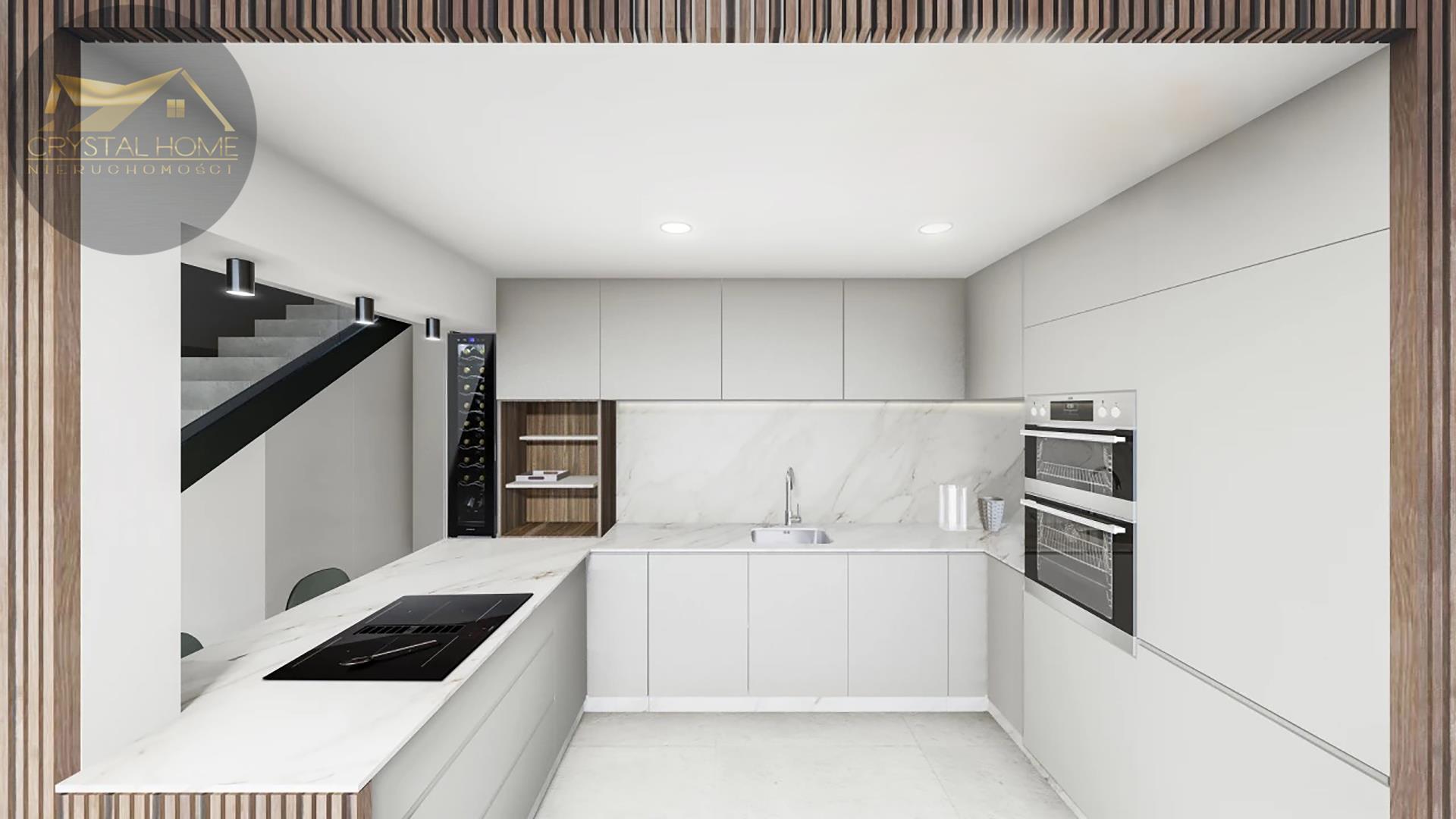 W pełni umeblowaną i wyposażoną kuchnię z płytą ceramiczną, piekarnikiem, kuchenką mikrofalową, wyciągiem odśrodkowym, lodówką, zmywarką i winiarką.