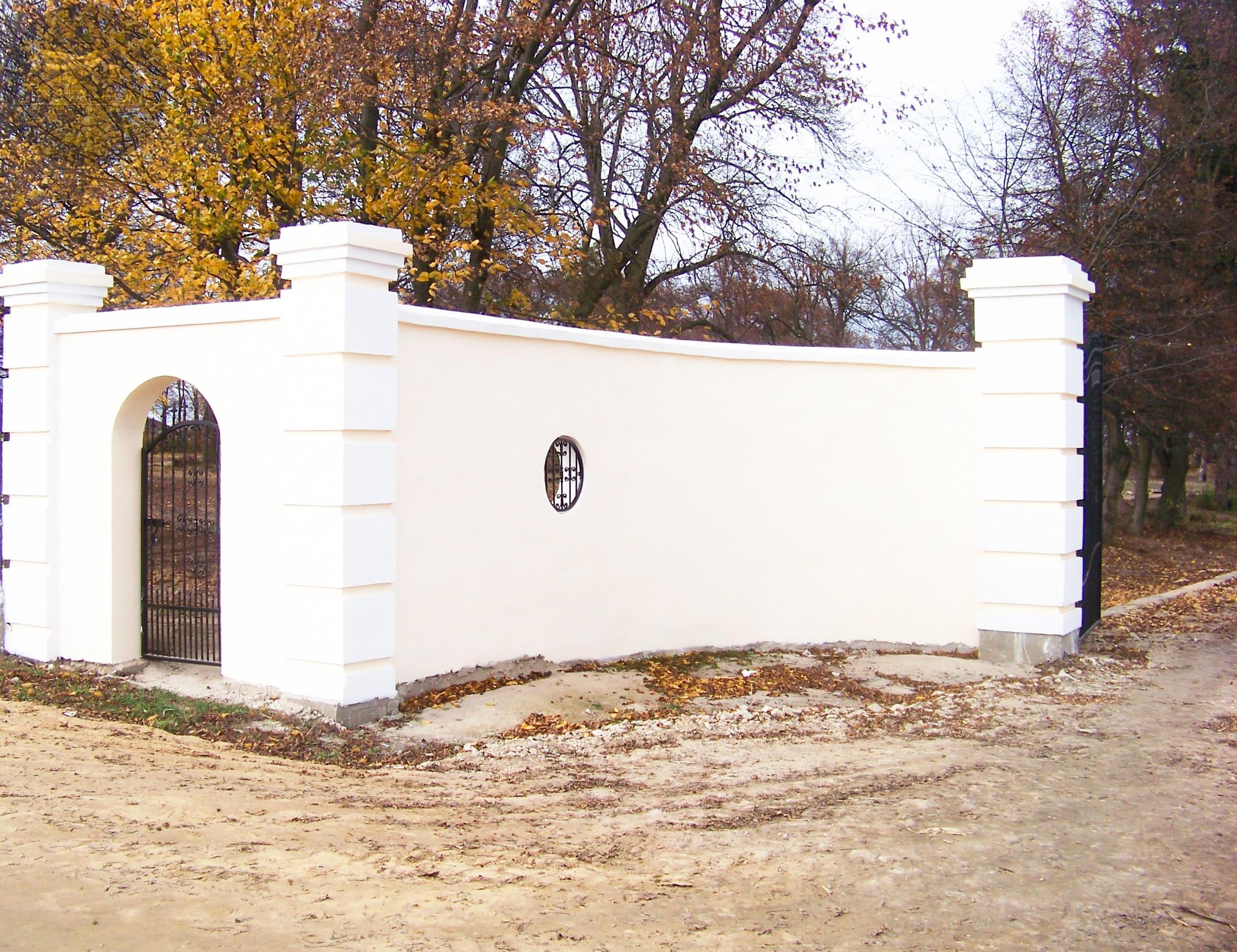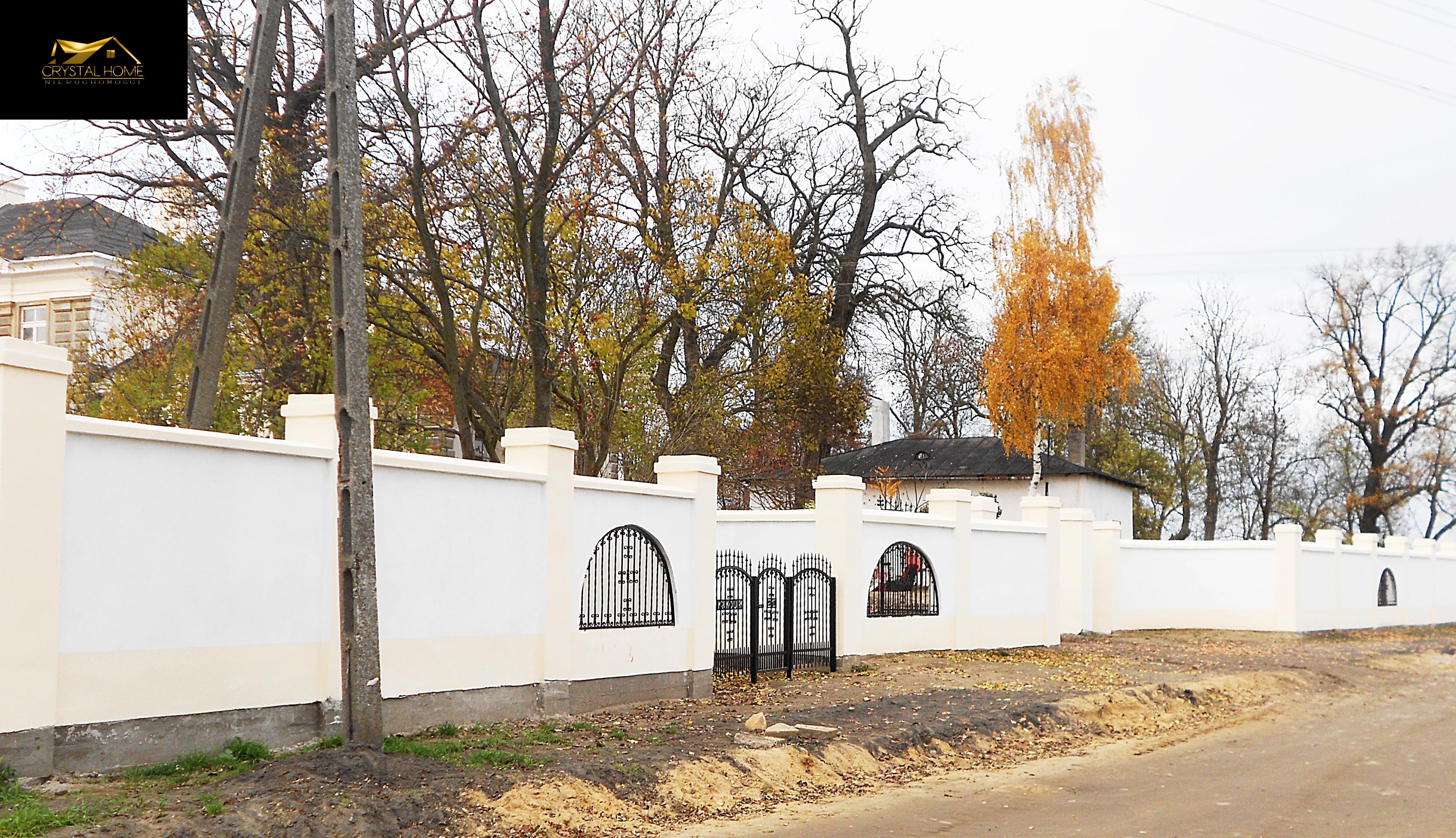 Ogrodzenie: murowane, 2 bramy wjazdowe, częściowo segmentowe, na zapleczu w parku mocna wysoka siatka ocynkowana.