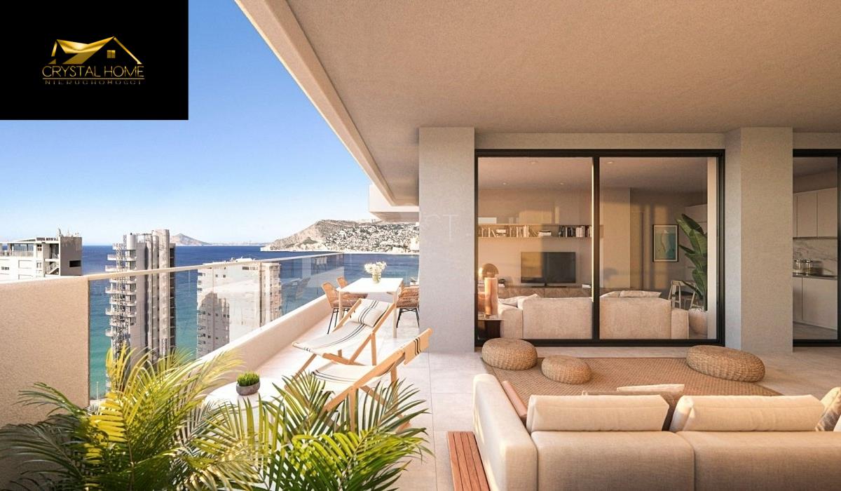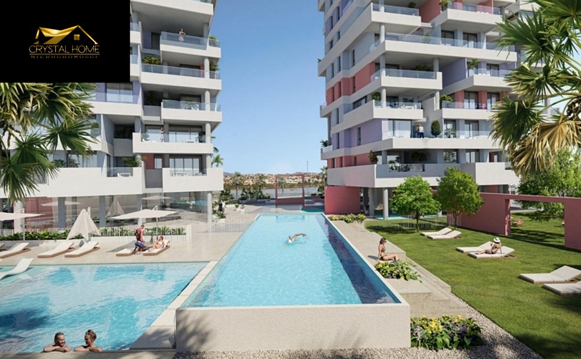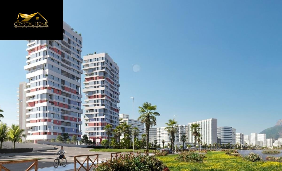 Apartamenty z 1, 2 i 3 sypialniami, z dużymi tarasami. Duże pomieszczenia ogólnodostępne z ogrodami, basenem, strefą dla dzieci, siłownią i basenem bez krawędzi z widokiem na morze