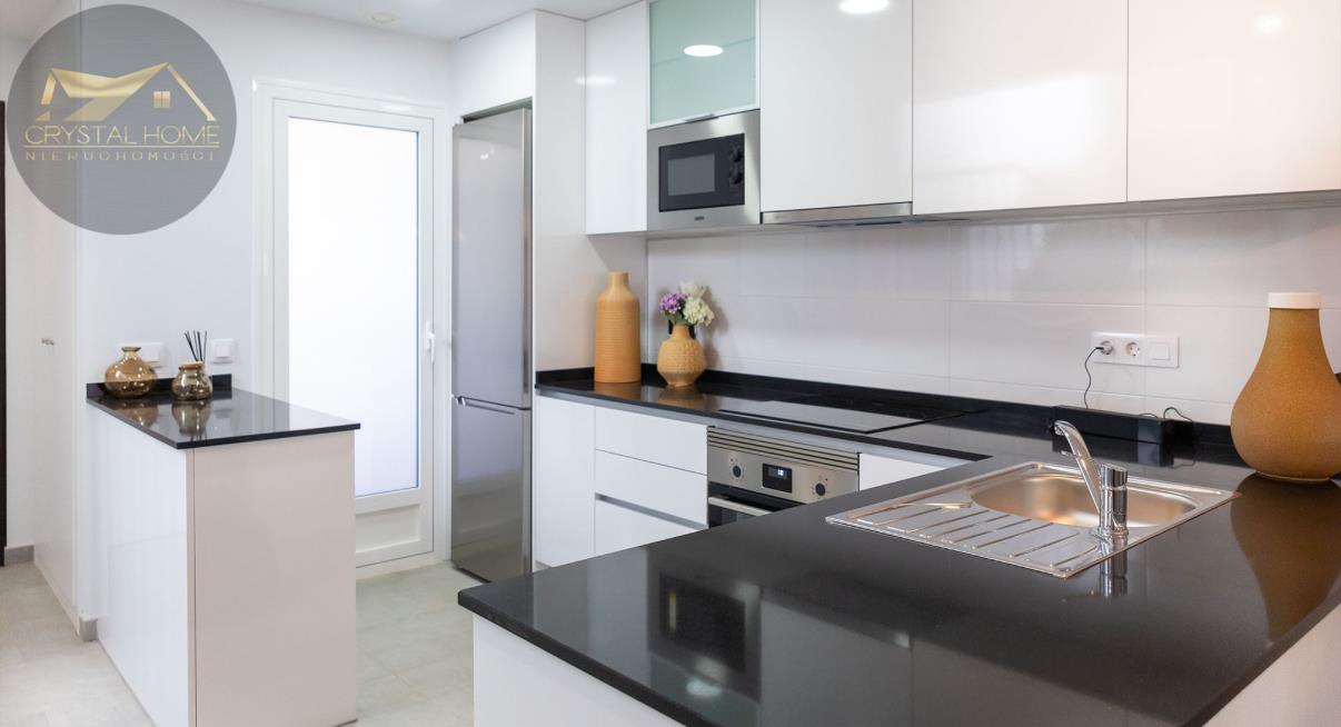 Elegancka i w pełni wyposażona kuchnia idealnie łączy się z jadalnią i z przytulnym salonem z bezpośrednim wyjściem na taras. Posiada wysokiej jakości sprzęt AGD. Możesz cieszyć się przestronną i wygodną przestrzenią idealną do gotowania, jedzenia i relaksu z przyjaciółmi i rodziną.