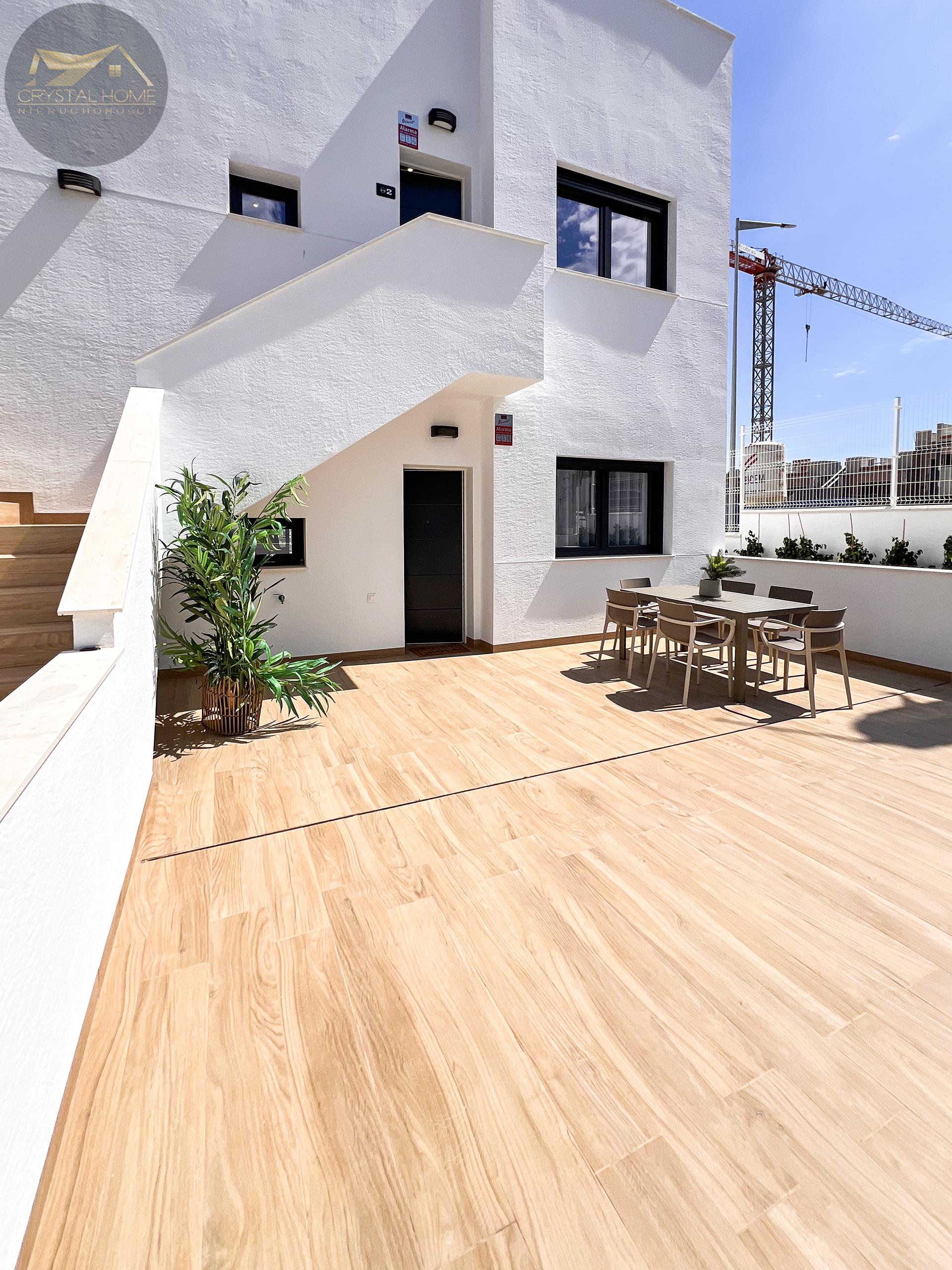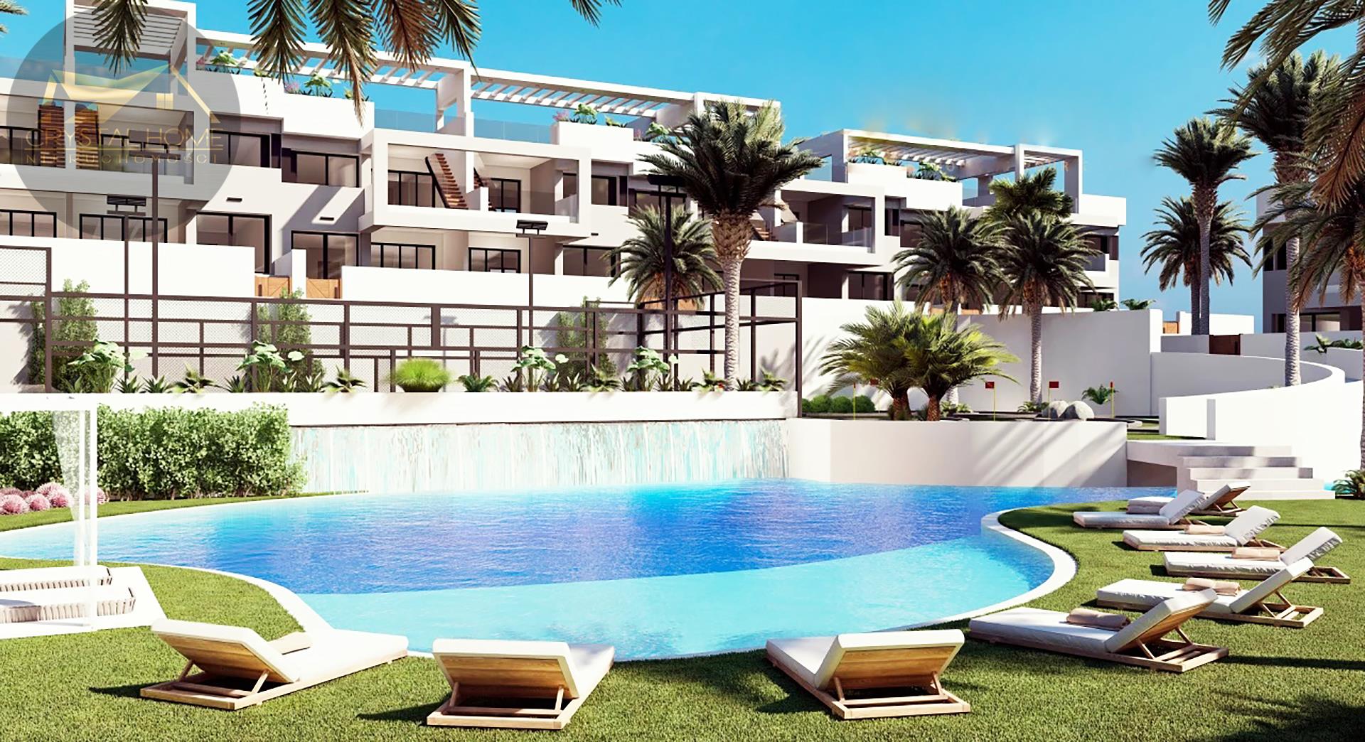Nieruchomości o powierzchni ponad 131m2 dysponują przestronnym salonem połączonym z jadalnią i w pełni wyposażoną i nowoczesną kuchnią. Dodatkowo znajdziemy tu 2 duże i komfortowe sypialnie z wbudowanymi szafami i 2 wyposażone łazienki. Możesz wybierać pomiędzy parterowymi bungalowami z 2 dużymi prywatnymi tarasami lub inwestycjami na pierwszym piętrze o powierzchni 178m2 z prywatnym solarium o powierzchni 85m2 z panoramicznym widokiem na Laguna Rosa i Morze Śródziemne.