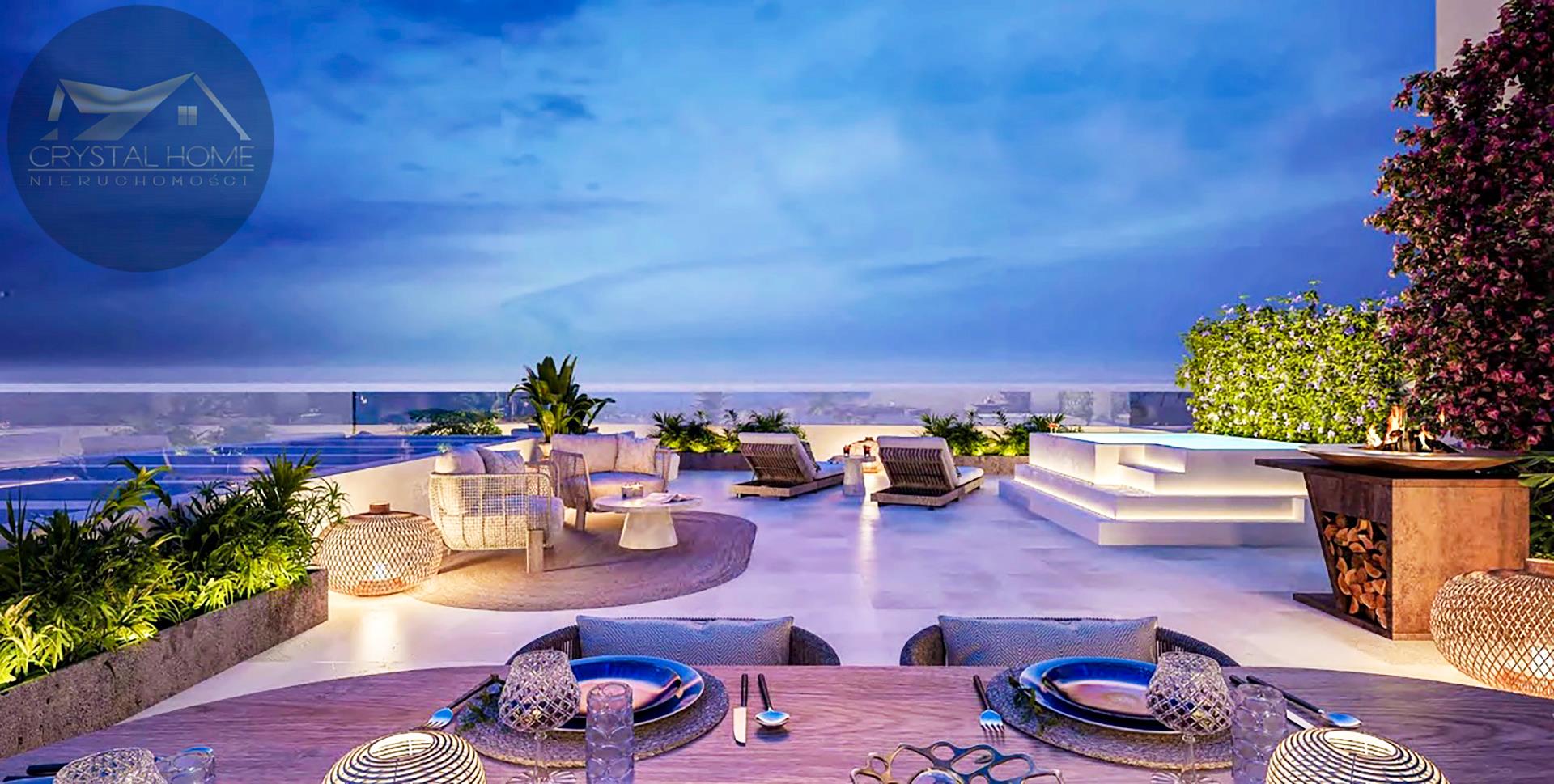 Na dachu inwestycji znajdziesz niezwykłe miejsce do relaksu, gdzie granice między niebem, a morzem zanikają nad basenem bez krawędzi, który wydaje się łączyć ze wschodem słońca. Uprzywilejowany zakątek, w którym każdy szczegół, od wygodnych stref relaksu po staranną integrację przestrzeni, zachęca do delektowania się pięknem otoczenia.