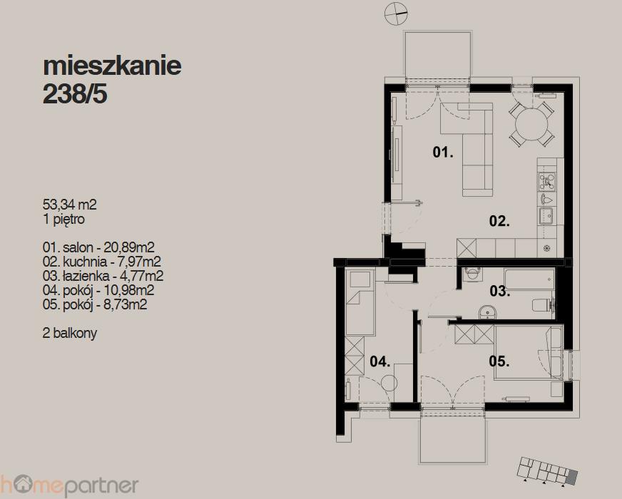 Na sprzedaż mieszkanie o powierzchni 53,34 m2 znajdujące się na 1 piętrze inwestycji deweloperskiej, zlokalizowanej na osiedlu Poświętne.