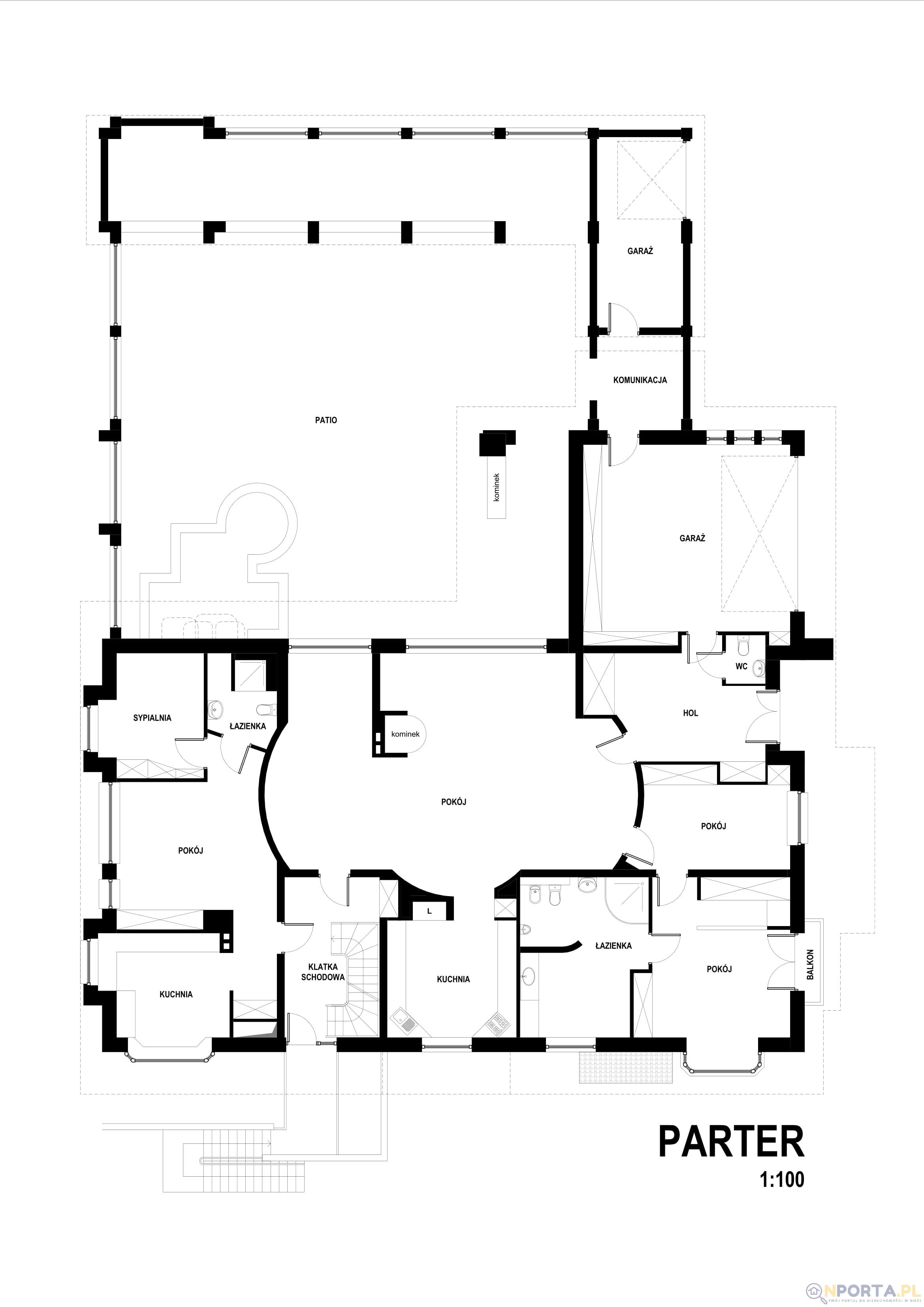 - salon/ sala klubowa 50 m2, ściana okien z wyjściem na dyskretne, przestronne patio z fontanną oraz grilem,
