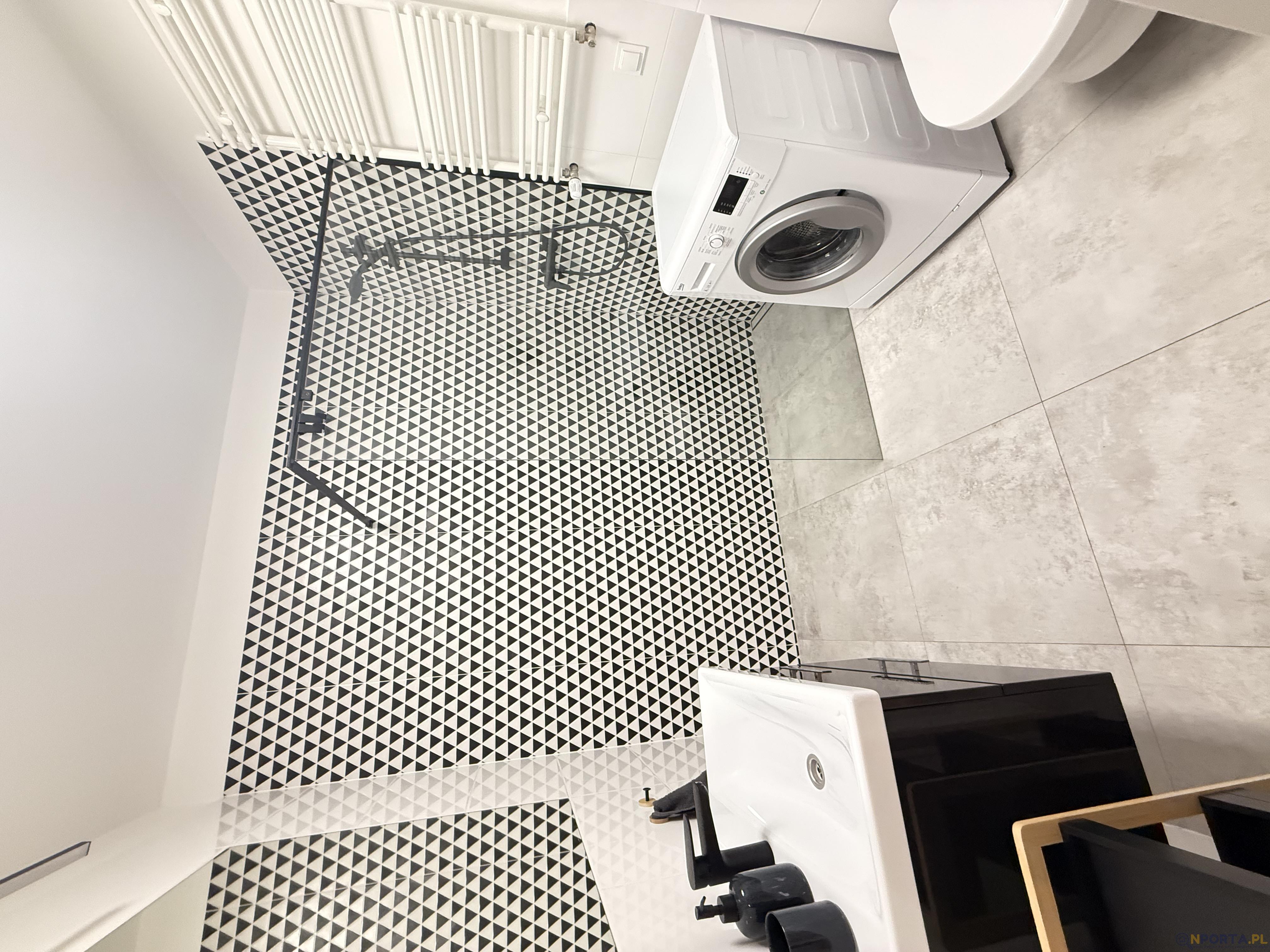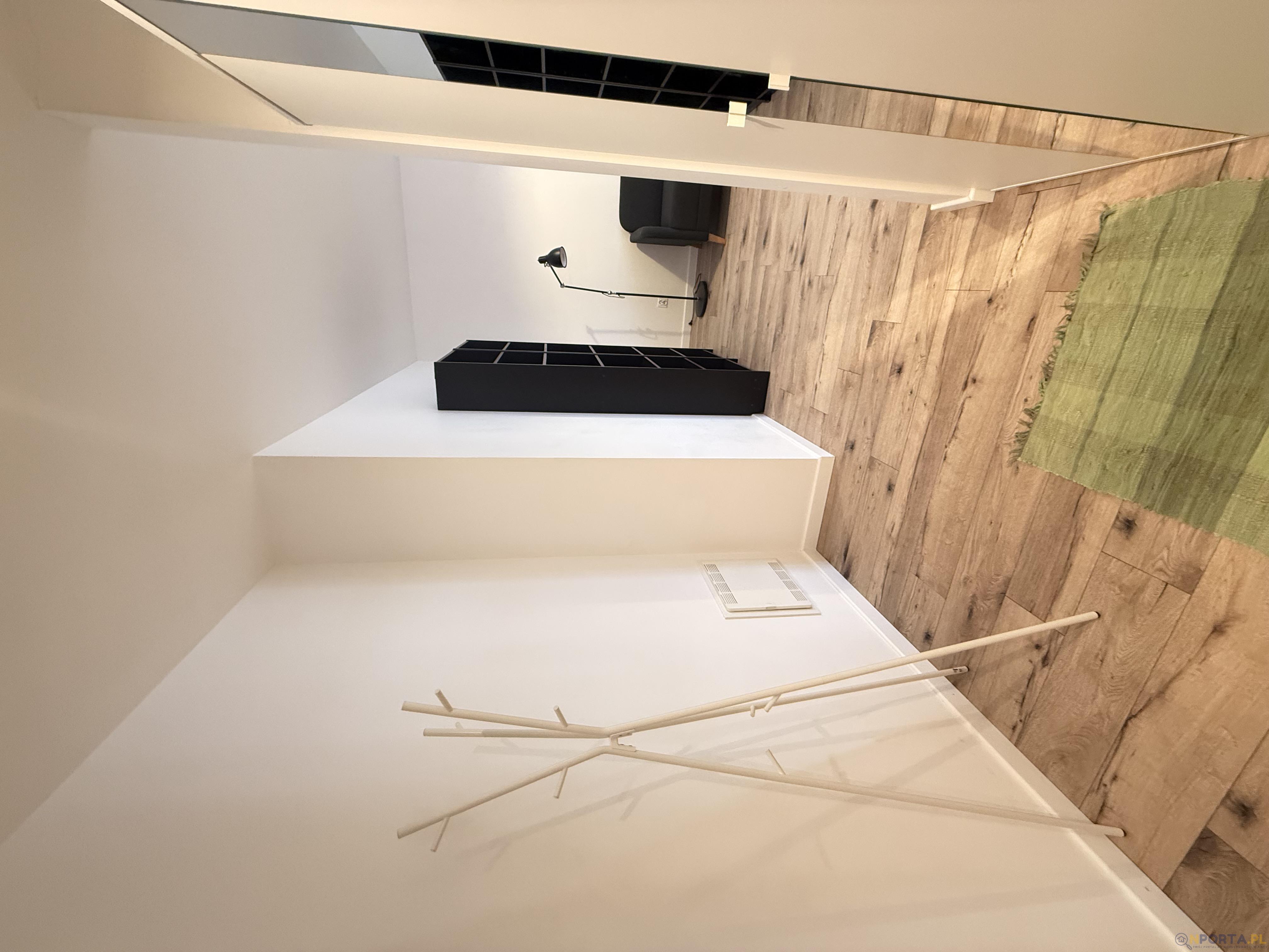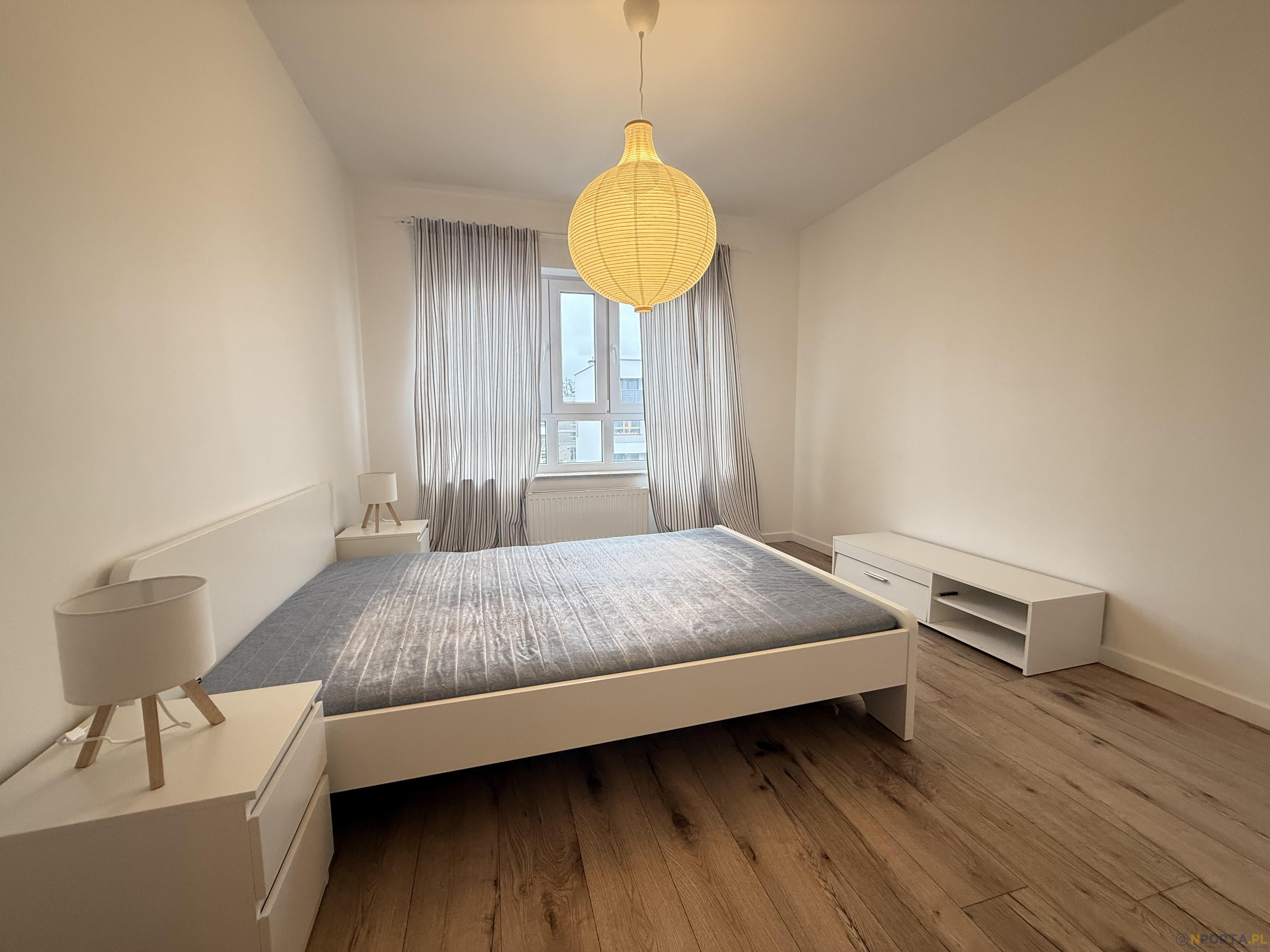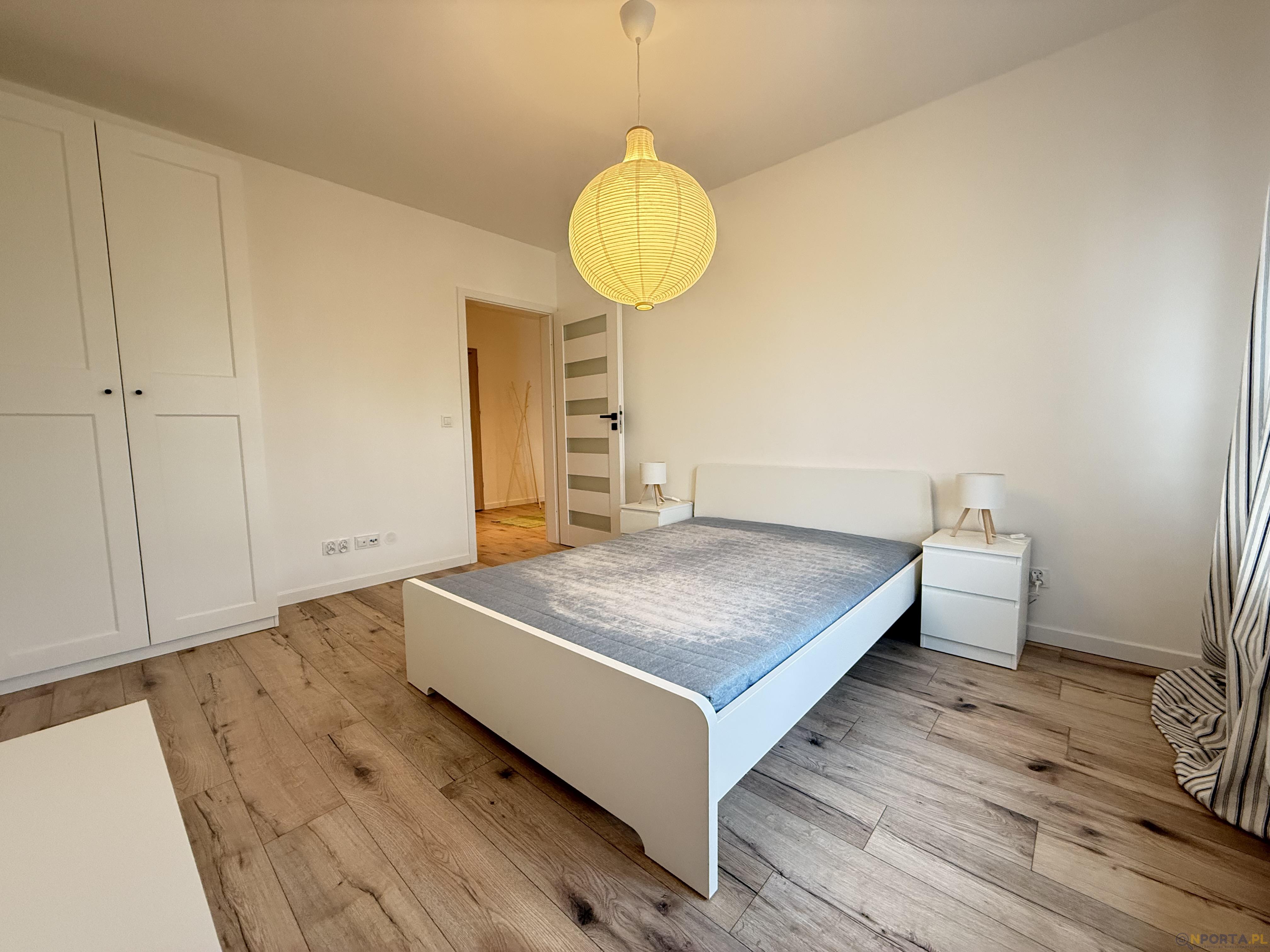 Na wyposażeniu w salonie stół z krzesłami, sofa, regały na książki, w łazience prysznic, pralka, w sypialni szafa, łóżko z nowym materacem, stoliki nocne.