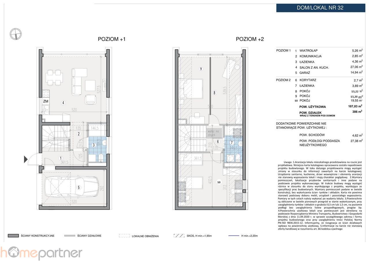 Powierzchnia użytkowa: 107,03 m Powierzchnia działki (wraz z terenem pod domem): 386 m