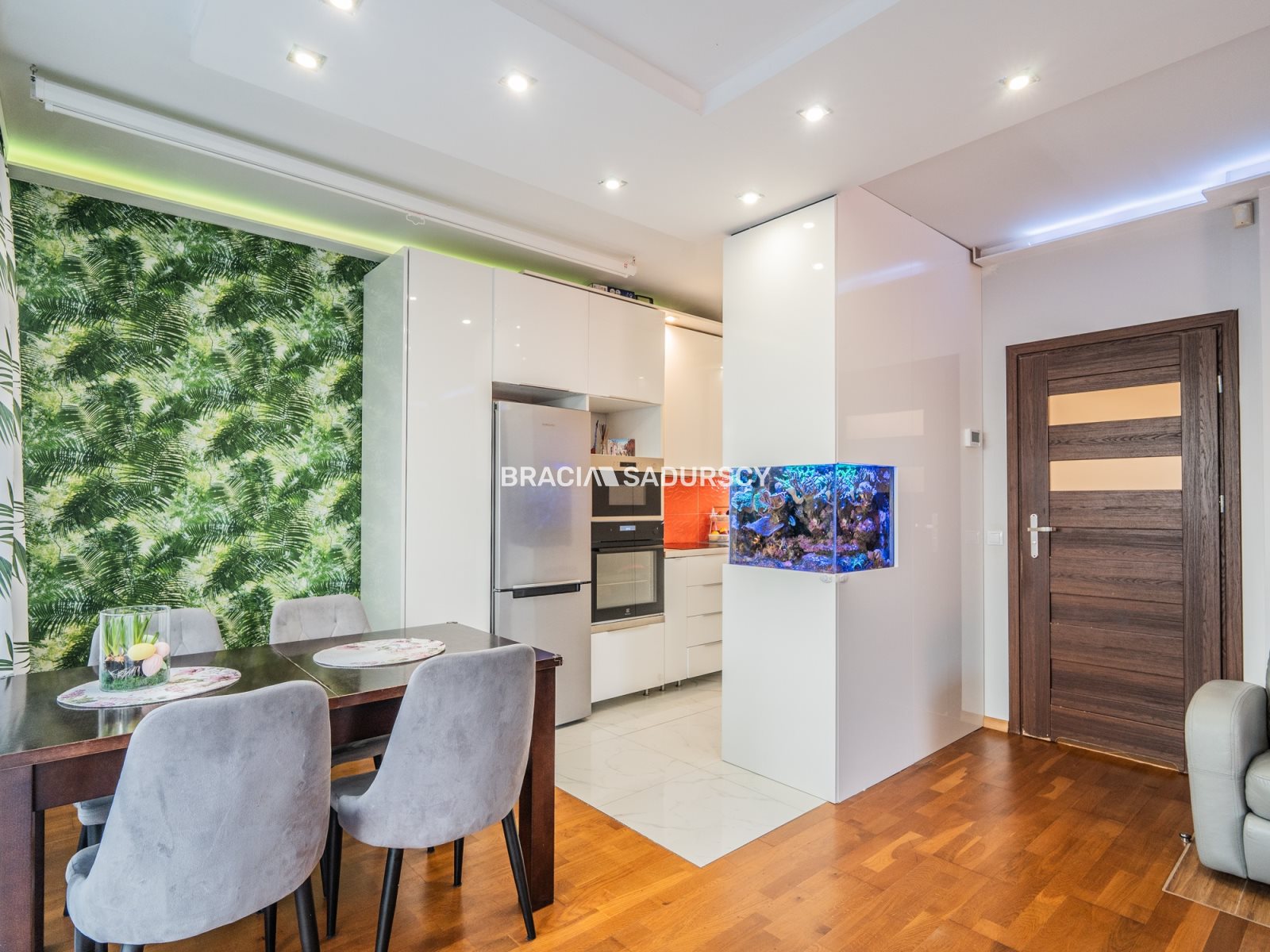 przestronny i jasny salon z aneksem kuchennym 29m2 oraz wyjściem na taras,