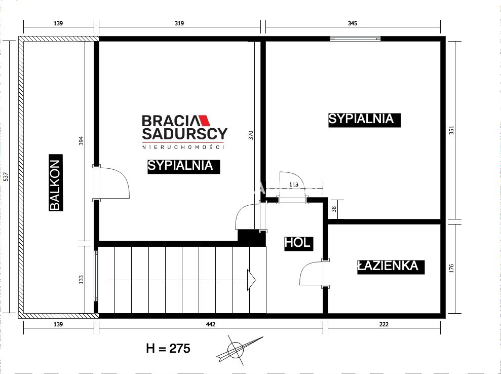 sypialnia z wyjściem na balkon, 12,35m2