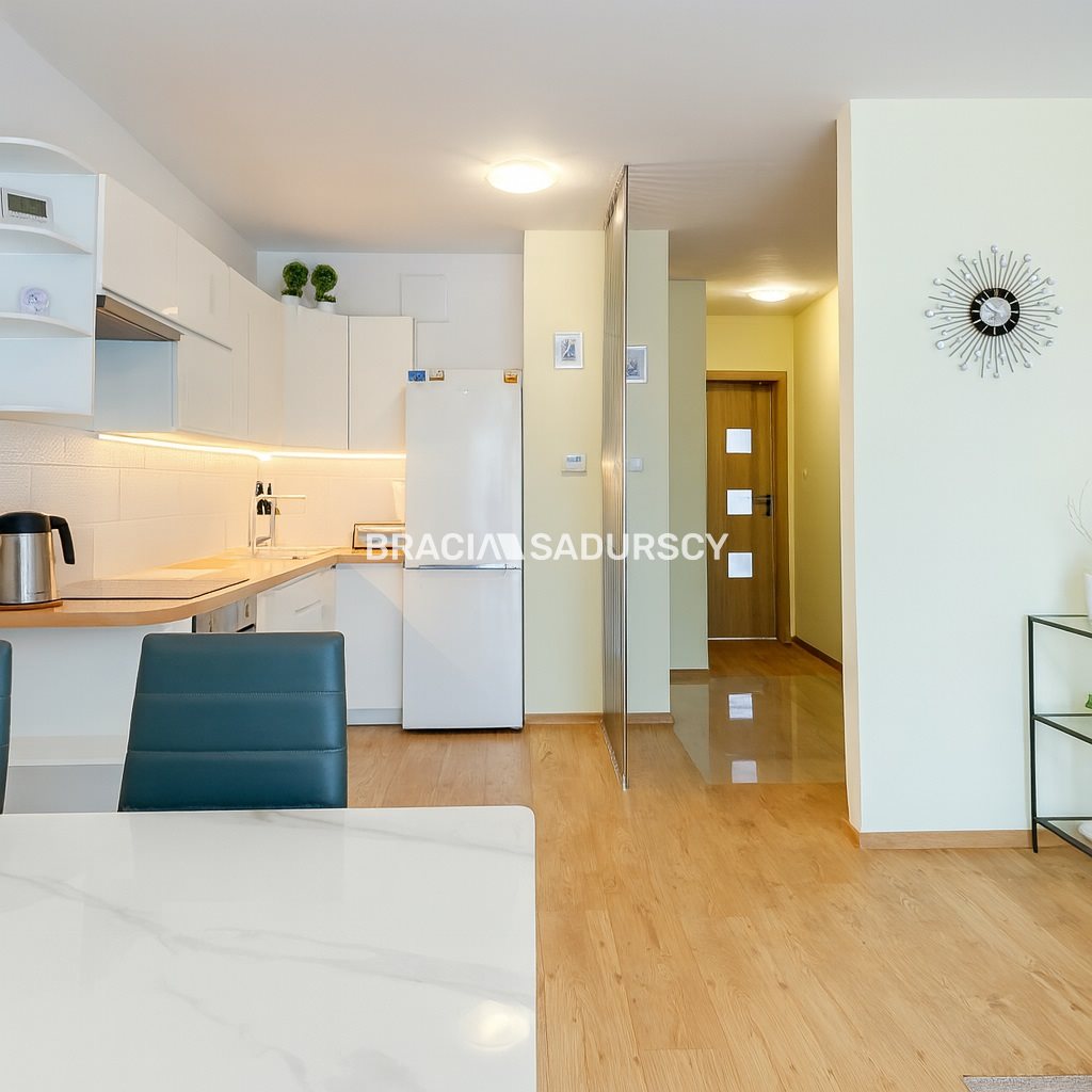 Ustawne, dwustronne mieszkanie usytuowane jest na 2.piętrze w trzypiętrowym budynku z 2016r. przy ul. Dębskiego, Opatkowice. Osiedle ogrodzone, monitoring, miejsce parkingowe naziemne przynależne do mieszkania. W budynku mała rowerownia, dodatkowo stojaki przed blokiem. Na terenie osiedla znajduje się trampolina dla dzieci i ławeczki. Ok 5-7 min do przystanku szybkiej kolejki aglomeracyjnej , która w 2 0 min dojeżdża do Rynku Głównego, a jeszcze szybciej można dostać się do Bonarki 10 min czy Zabłocie 14min / 7 min spacerem do przystanku autobusowego z liniami: 175,243,475, Lokalizacja cechuje się dobrym wyjazdem w stronę Skawiny oraz Zakopanego czy obwodnicy Krakowa. W pobliżu znajdują się sklepy spożywcze, warzywniak, piekarnia, food truck, lodziarnia, a w promieniu 2 km Lidl, Biedronka, Orlen, BP, KFC, Pepco, Rossmann.