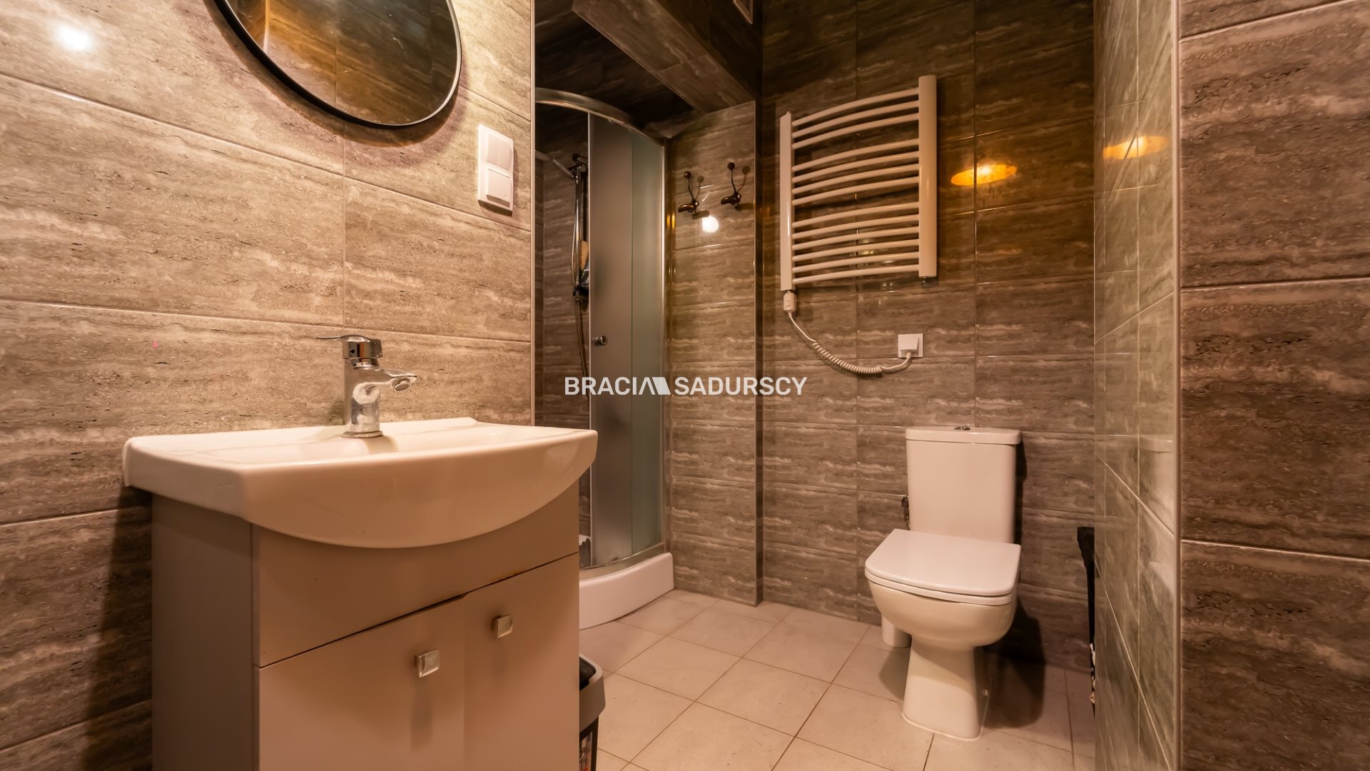 W mieszkaniu podłogi-płytki z ogrzewaniem podłogowym.