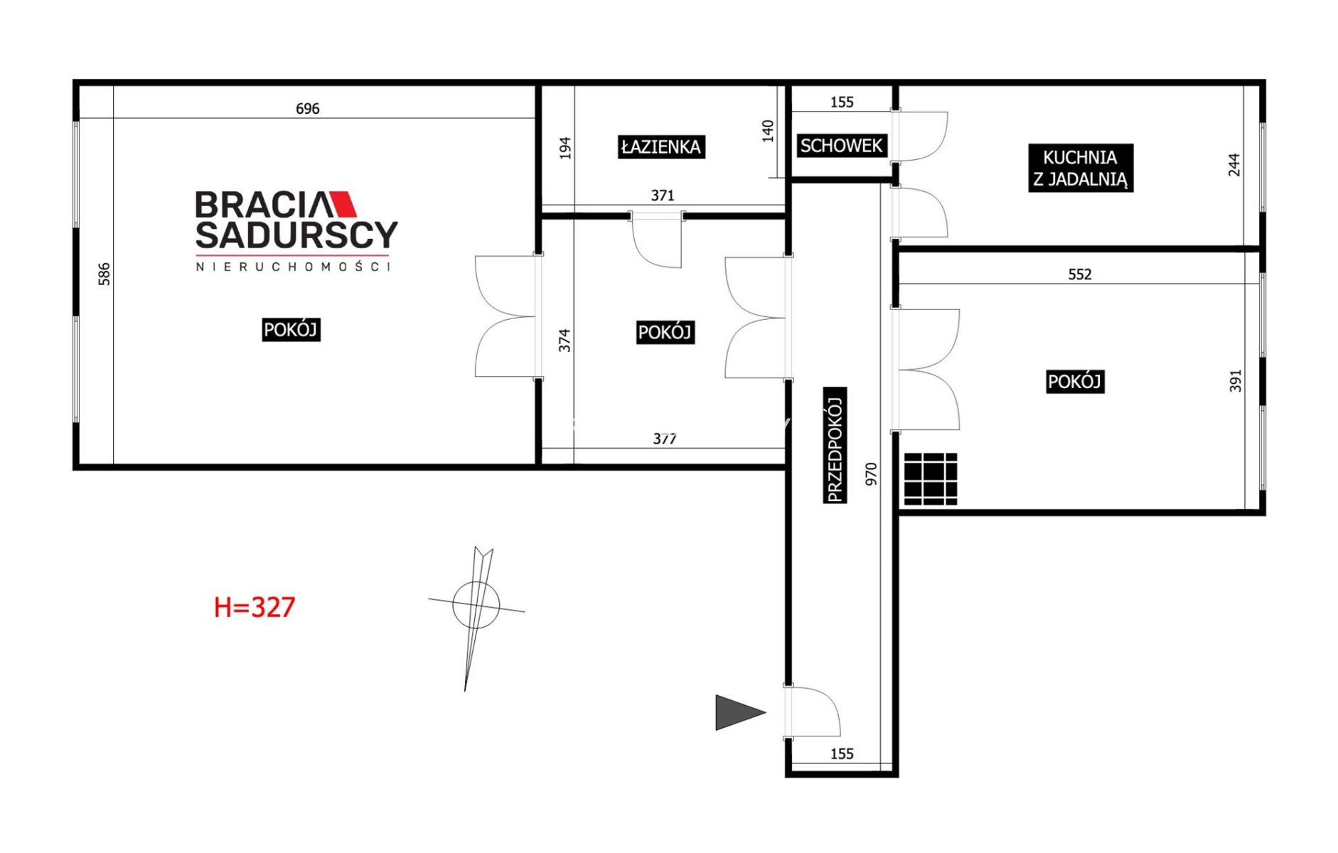 • Układ mieszkania: 2 duże pokoje + 1 pokój przechodni + kuchnia z jadalnią