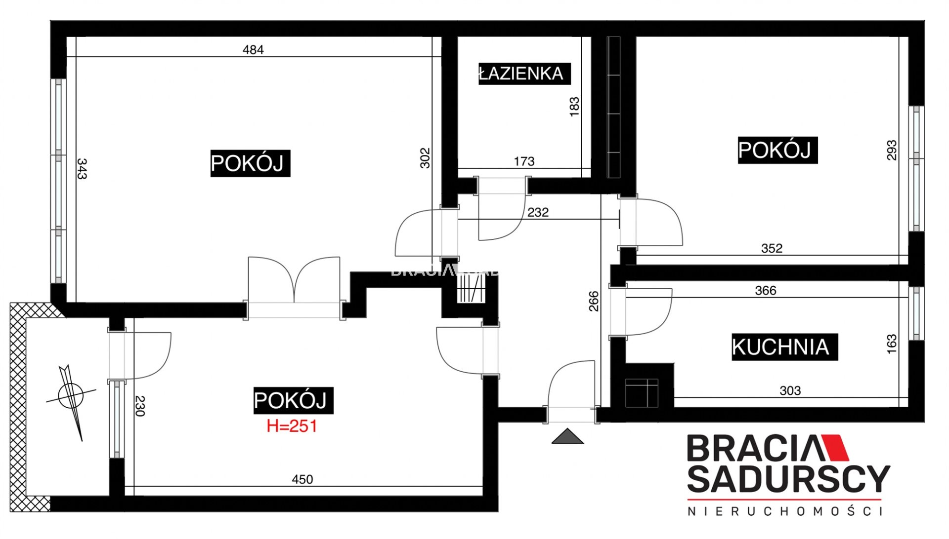 - Trzy oddzielne pokoje o powierzchniach: 16 i 2 x po 10 m2. Ekspozycja wschód i zachód.