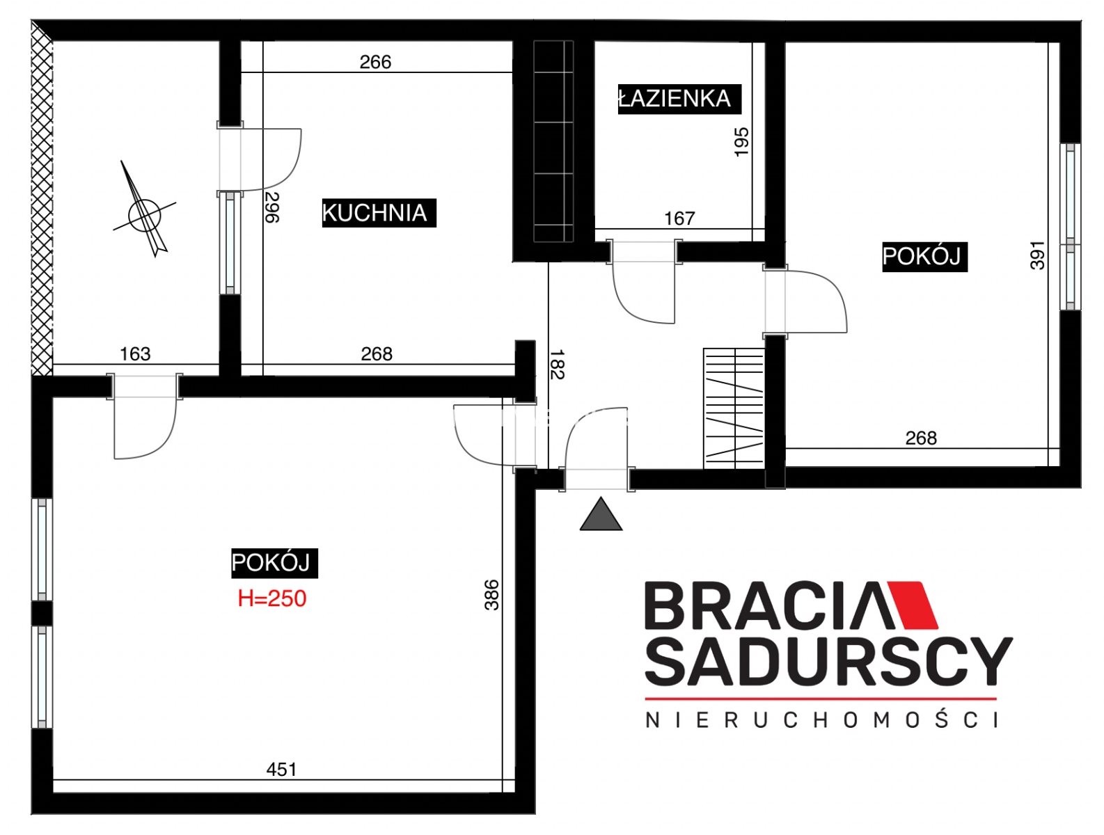 Rozkład i wymiary poszczególnych pomieszczeń zawiera załączony w ogłoszeniu rzut.