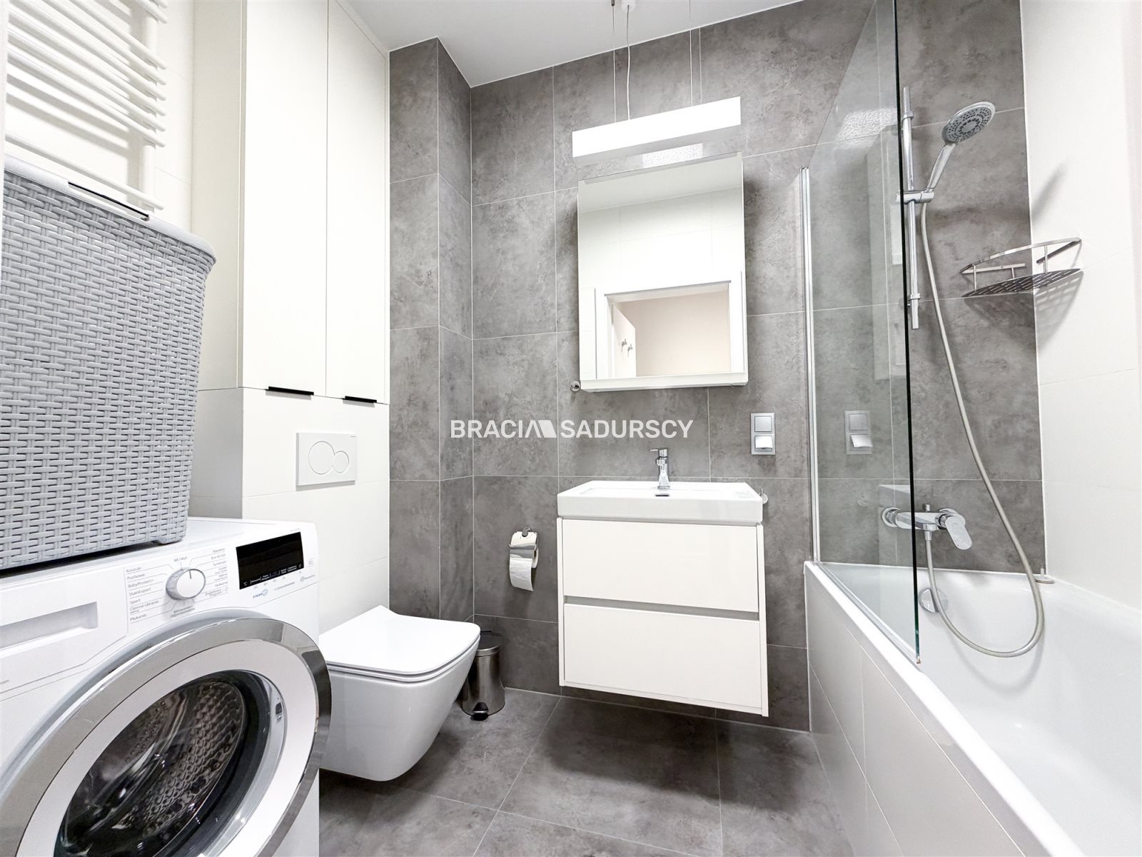 In front of the apartment there is a vestibule reserved exclusively for the tenants of this unit. You can leave a stroller, scooter or bicycle there. Custom-made furniture in every room, large built-in wardrobes. Two TVs, 55" and 65". Appliances: dishwasher, oven, fridge, washing machine , tumble dryer, iron, vacuum cleaner. Fully prepared kitchen: pots, plates, cutlery and utensils (Gerlach brand).