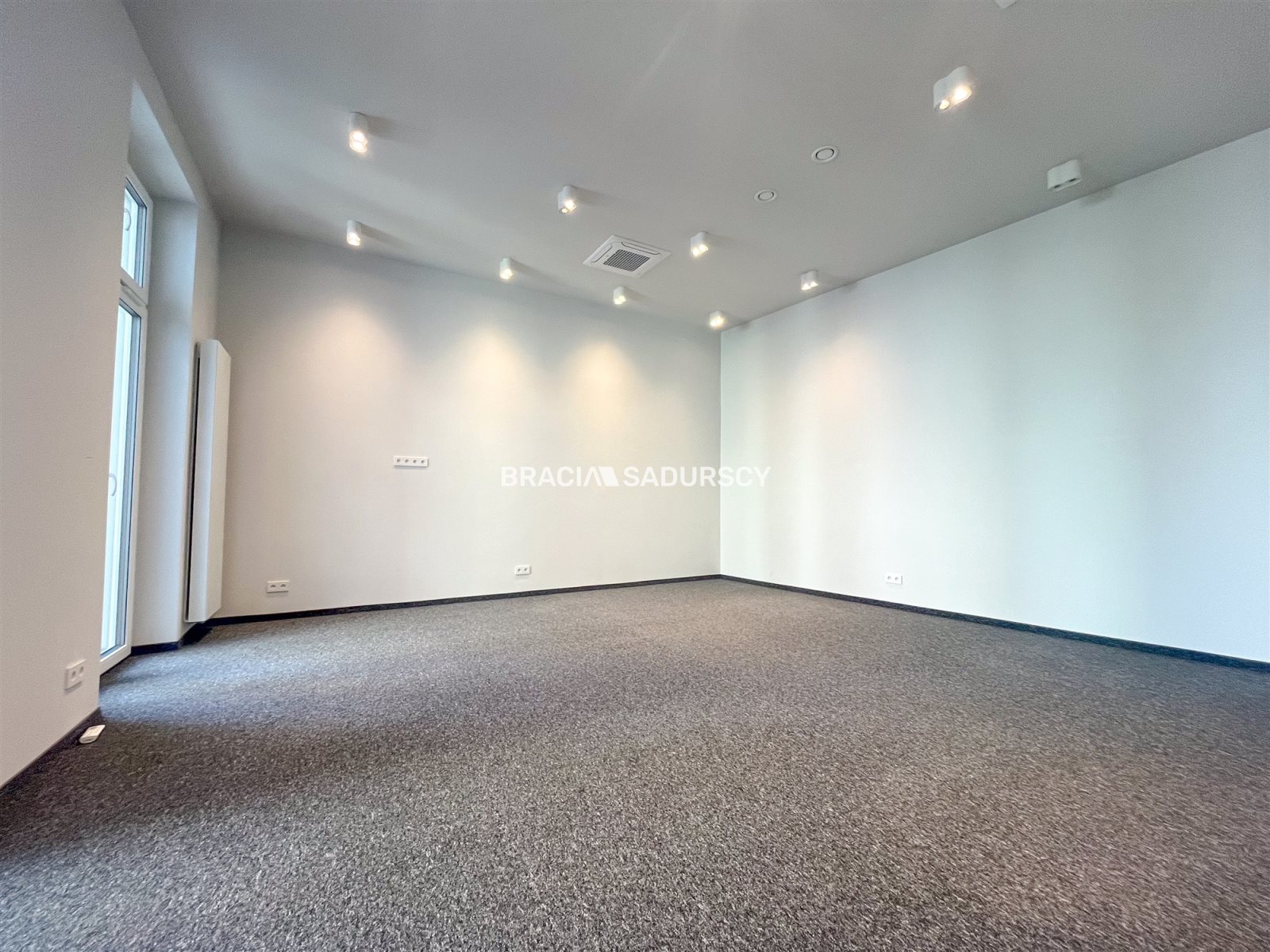 Dużego, reprezentacyjnego pomieszczenia z balkonem - idealne na recepcję, przestrzeń open space lub gabinet główny
