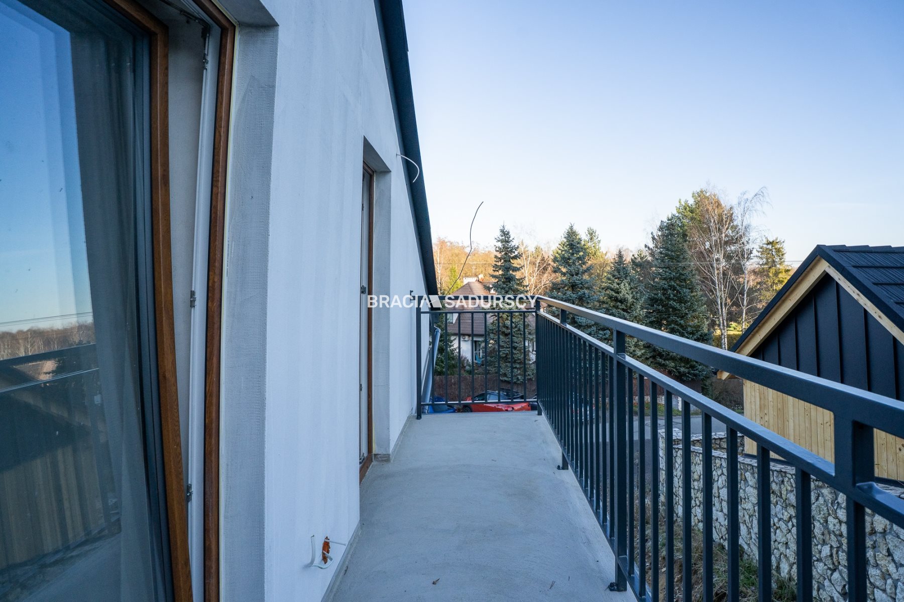 z dwóch sypialni wyjście na taras z widokiem na zieleń