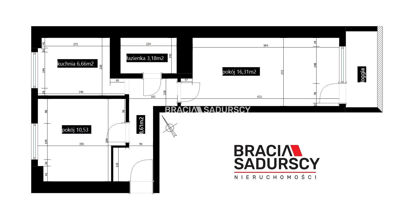 Ekspozycja w kuchni i mniejszym pokoju: północno-zachodnia, w większym pokoju z loggią: południowo-wschodnia.