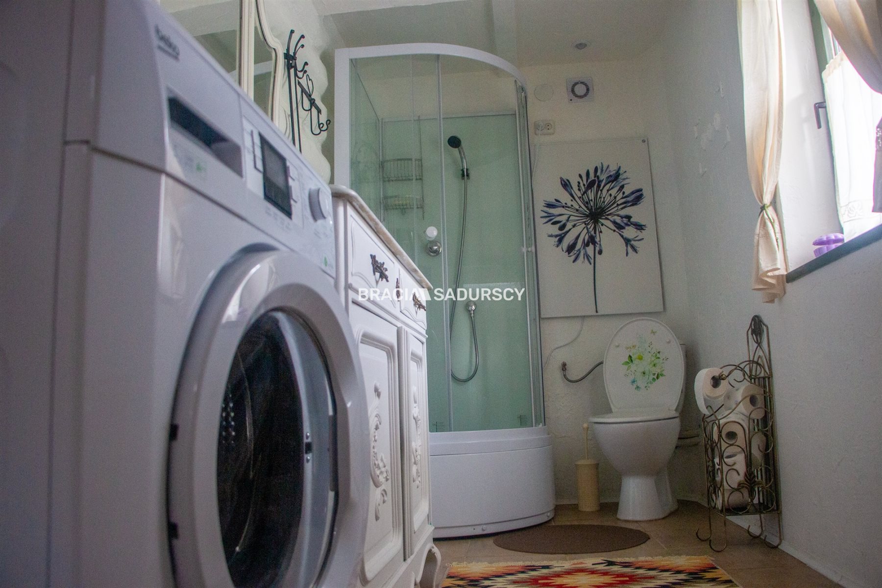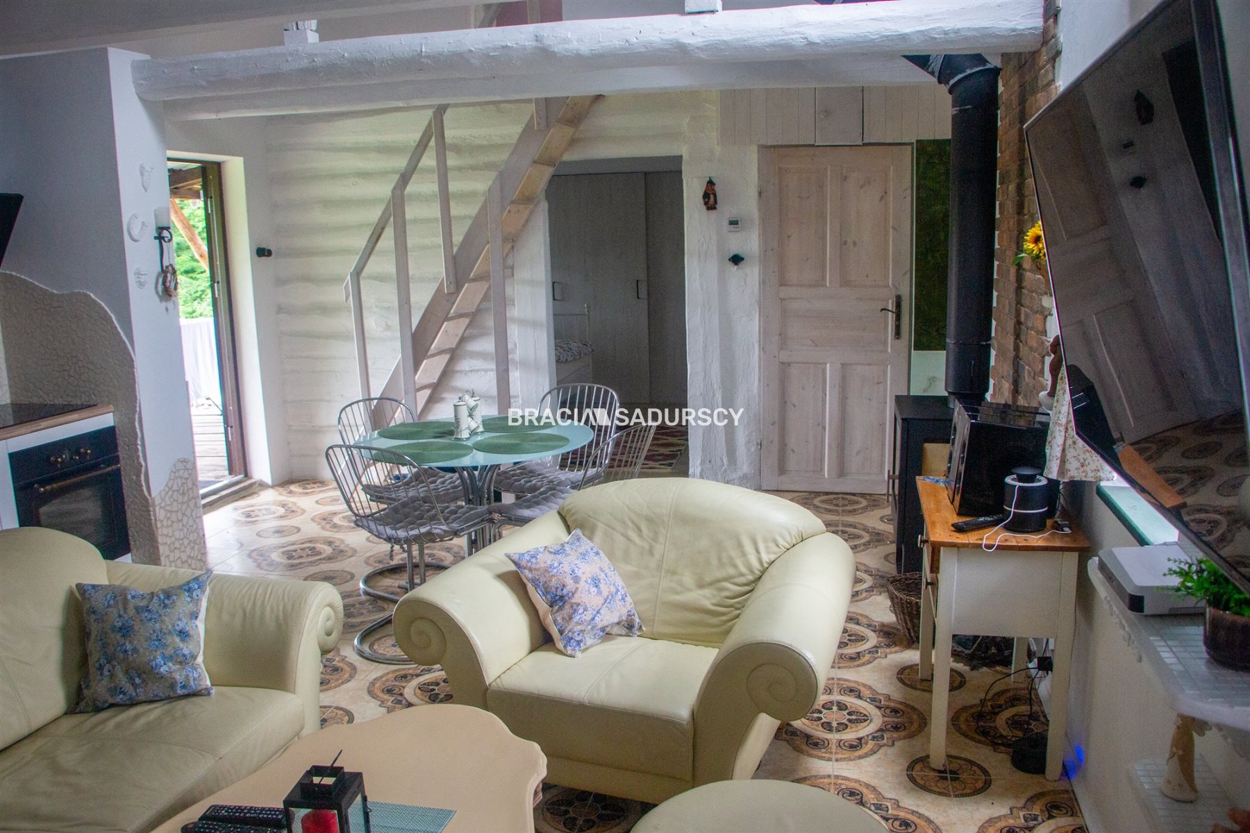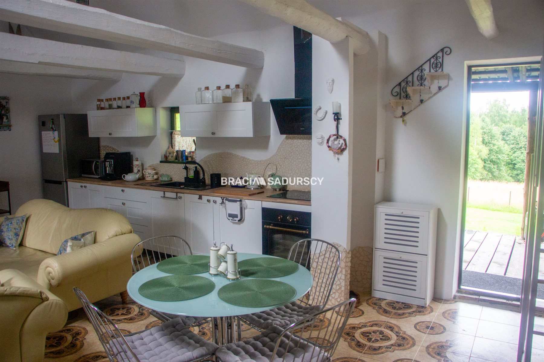 Starannie wyremontowany dom z bali z 1934 r., na siedliskowej działce o pow. 1,22 ha, w tym ok. 0.,60 ha lasu. Dom parterowy z użytkowym poddaszem posiada salon z aneksem kuchennym, 2 sypialnie, oraz duży taras. Dom w pełni wyposażony i umeblowany. Woda ze studni głębinowej, własna oczyszczalnia ścieków, siła, światłowód. Ogrzewanie elektryczne (panele na podczerwień) i kominek. Okna drewniane, dach kryty blacha, Działka ogrodzona. Klimatyczne, zaciszne miejsce w odległości ok. 55 km od Krakowa, ok. 17 km od Bochni i ok. 10 km od Nowego Wiśnicza.