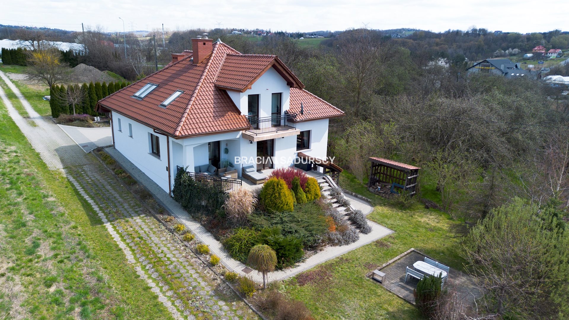 Działka jest wyjątkowa - pięknie zagospodarowana, z dużą ilością drzew, krzewów i kwiatów. Z tarasu rozpościera się panoramiczny widok na okoliczne wzgórza, co sprawia, że każdy dzień będzie przyjemnością.