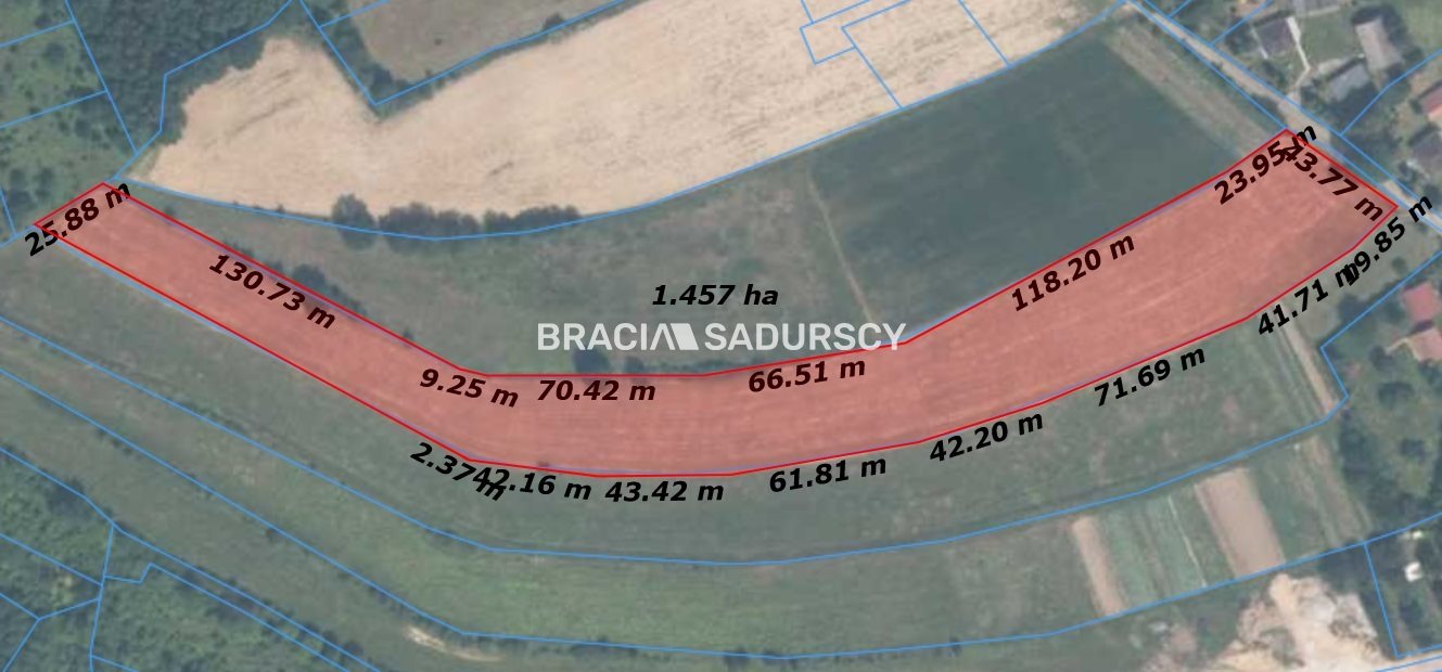 Działka znajduje się w spokojnej i zielonej okolicy, z dala od miejskiego zgiełku, a jednocześnie z doskonałym dojazdem do Krakowa. Teren jest lekko nachylony, dobrze nasłoneczniony i otoczony przyrodą, co gwarantuje komfort i prywatność. W pobliżu znajdują się szkoły, sklepy oraz przystanki komunikacji miejskiej, co zapewnia wygodę codziennego życia.