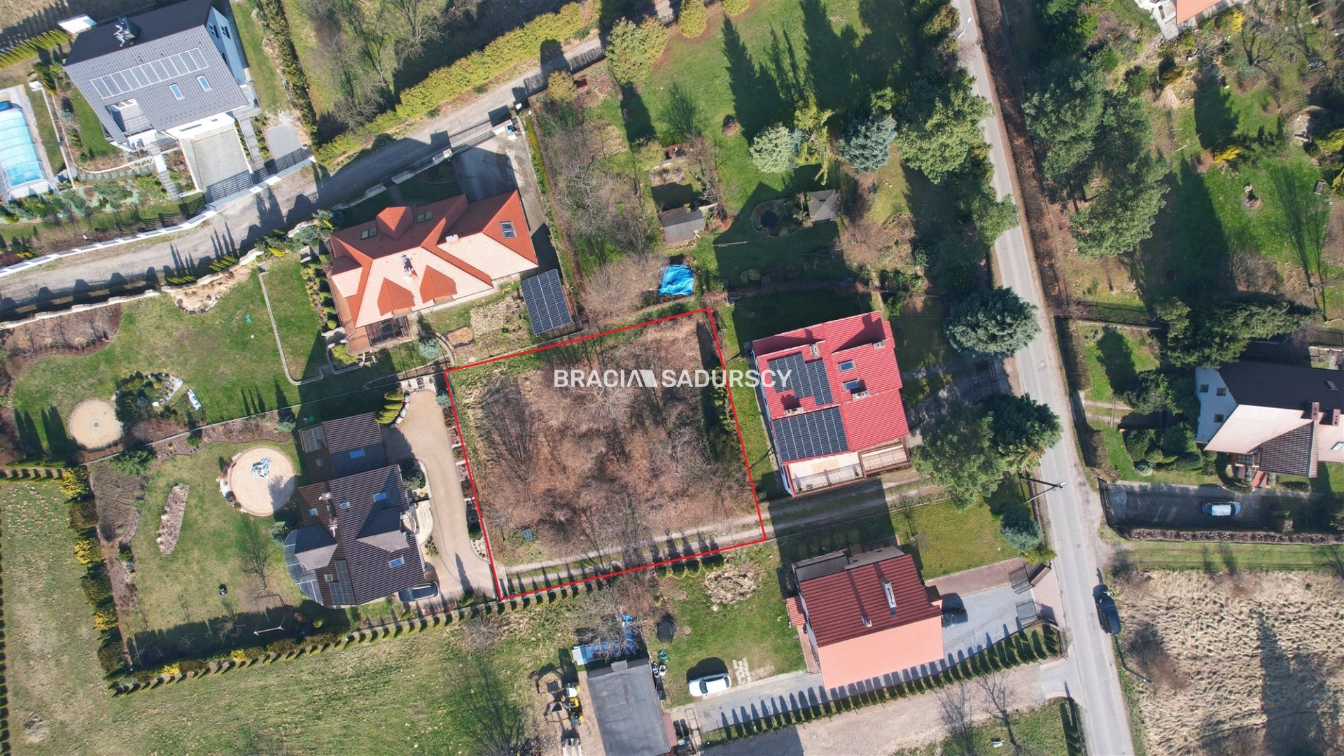 Działka posiada dostęp do asfaltowej drogi publicznej poprzez urządzoną drogę służebną o szerokości 4 m, wpisaną do księgi wieczystej. W pobliżu znajdują się m.in.: