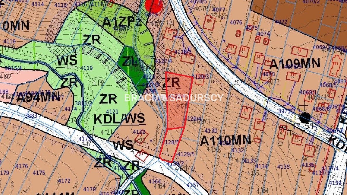 Działka leży w TERENIE ZABUDOWY MIESZKANIOWEJ JEDNORODZINNEJ oznaczonej na rysunku planu symbolem A110MN, z podstawowym przeznaczeniem terenów pod zabudowę mieszkaniową jednorodzinną: wolnostojącą, bliźniaczą i szeregową , z możliwością wydzielenia w budynku mieszkalnym lokalu na cele usługowe.