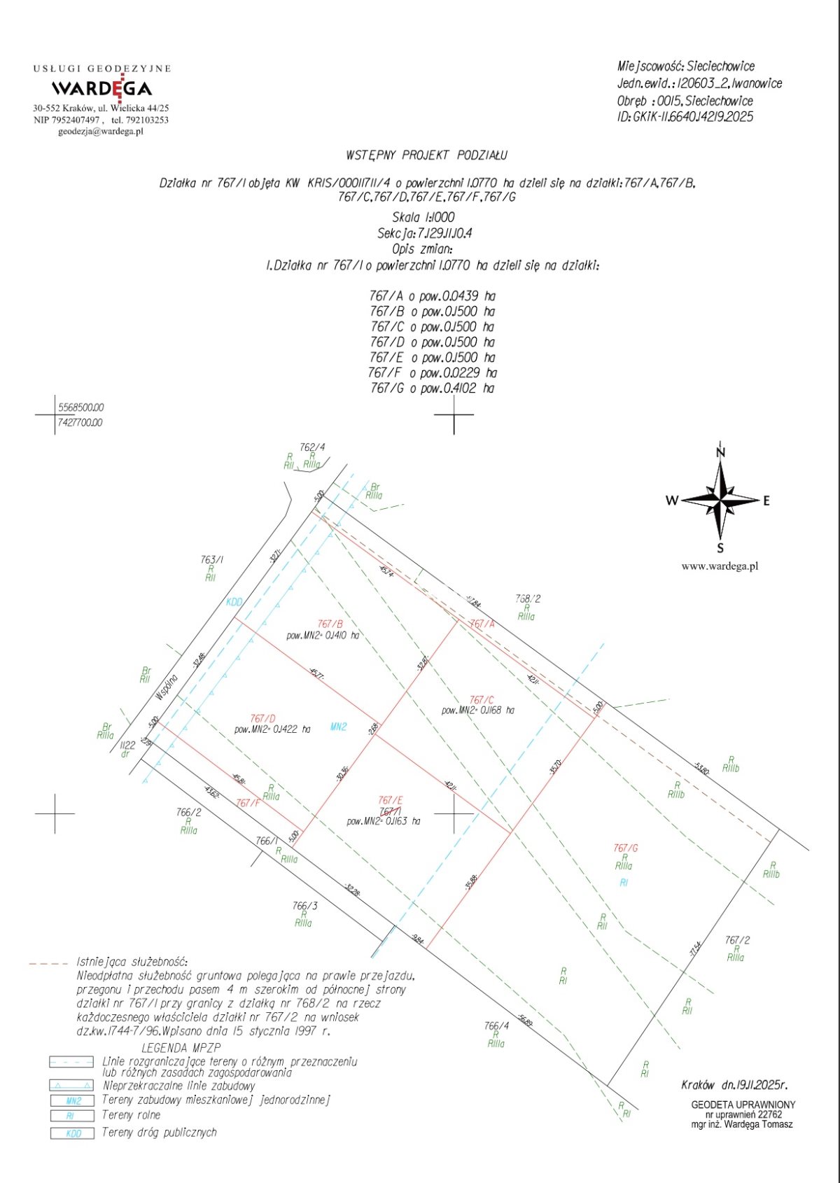 Działka budowlana Sieciechowice blisko Krakowa / Iwanowic. Piękna, widokowa działka o wymiarach 35,7 m szerokości (front) i 42,1 m długości, położona w miejscowości Sieciechowice gmina Iwanowice. Powierzchnia działki 1500 m2 (1168 m2 - budowlanej). Działka ma bezpośredni dostęp do drogi gminnej asfaltowej, w aktualnym planie zagospodarowania przestrzennego uchwalonego przez Radę Gminy Iwanowice oznaczona jako MN2.