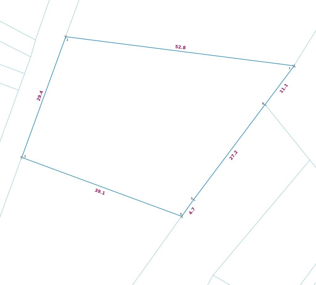 wymiary orientacyjne: ok. 29,4 m x 52,8 m (od strony drogi)