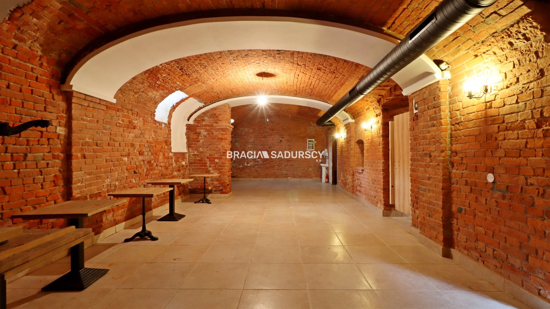 Piwnica posiada ściany z odkrytej cegły ze sklepieniem łukowym. Podłogi w całym lokalu z terakoty, okna drewniane. Ogrzewanie i ciepła woda z własnego pieca gazowego, klimatyzacja na parterze.