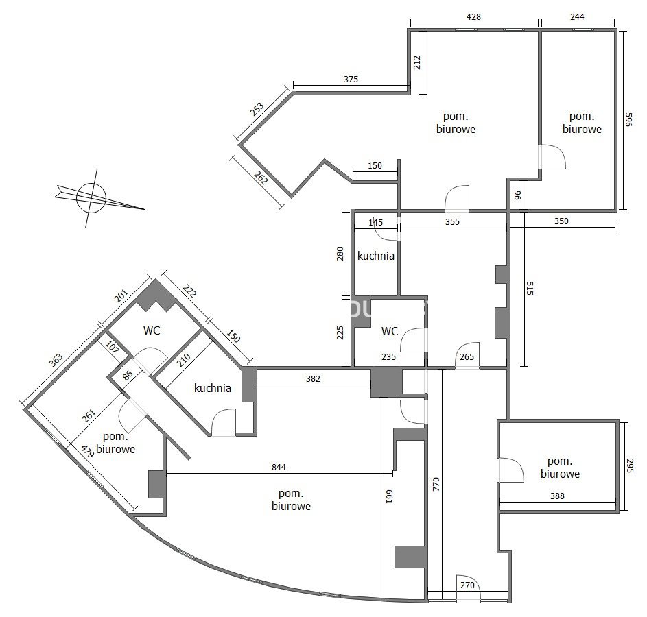 Lokal posiada 2 pomieszczenia biurowe, salę recepcji (sekretariatu), pomieszczenie socjalne i łazienkę.