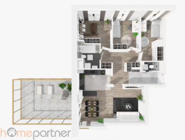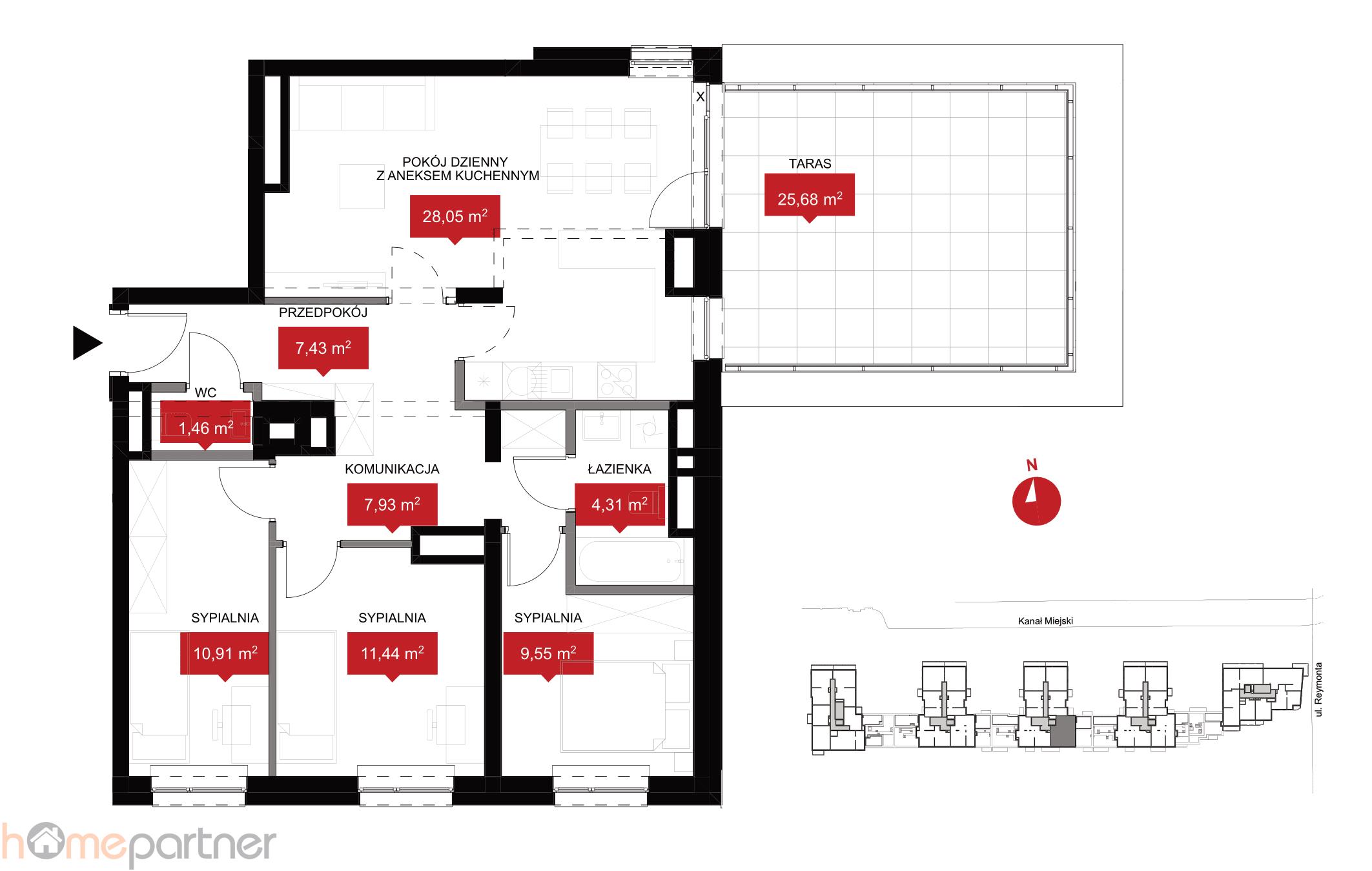 Do mieszkania przynależy<b> taras</b> <b>z widokiem na rzekę </b>o powierzchni po 25,68 m2