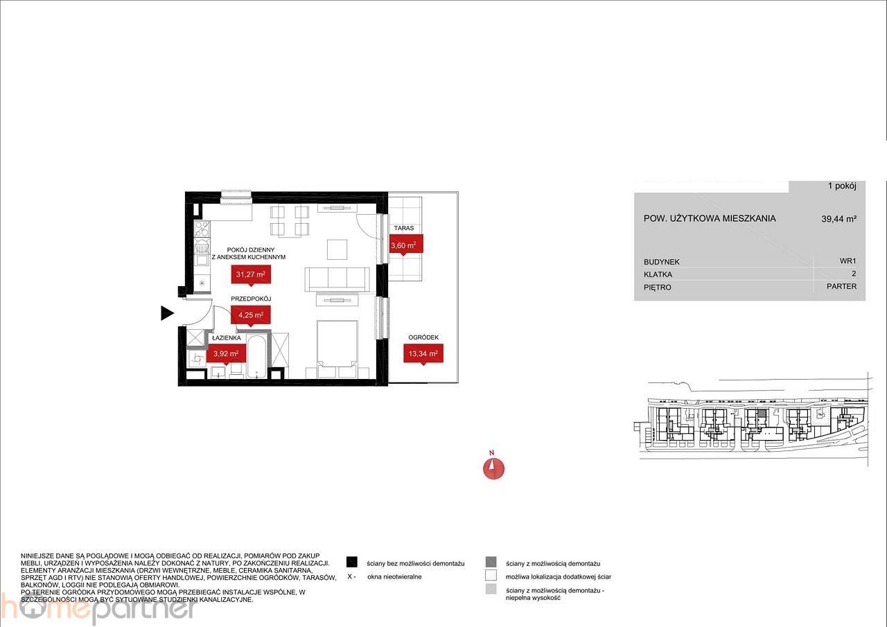 Mieszkanie o powierzchni 39,44 m, znajduje się na parterze budynku.