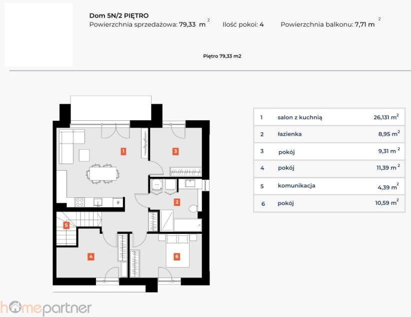 Dobrze doświetlony salon z aneksem kuchennym, toaleta, przedsionek z miejscem na zabudowę szaf. Trzy ustawne sypialnie oraz łazienka.