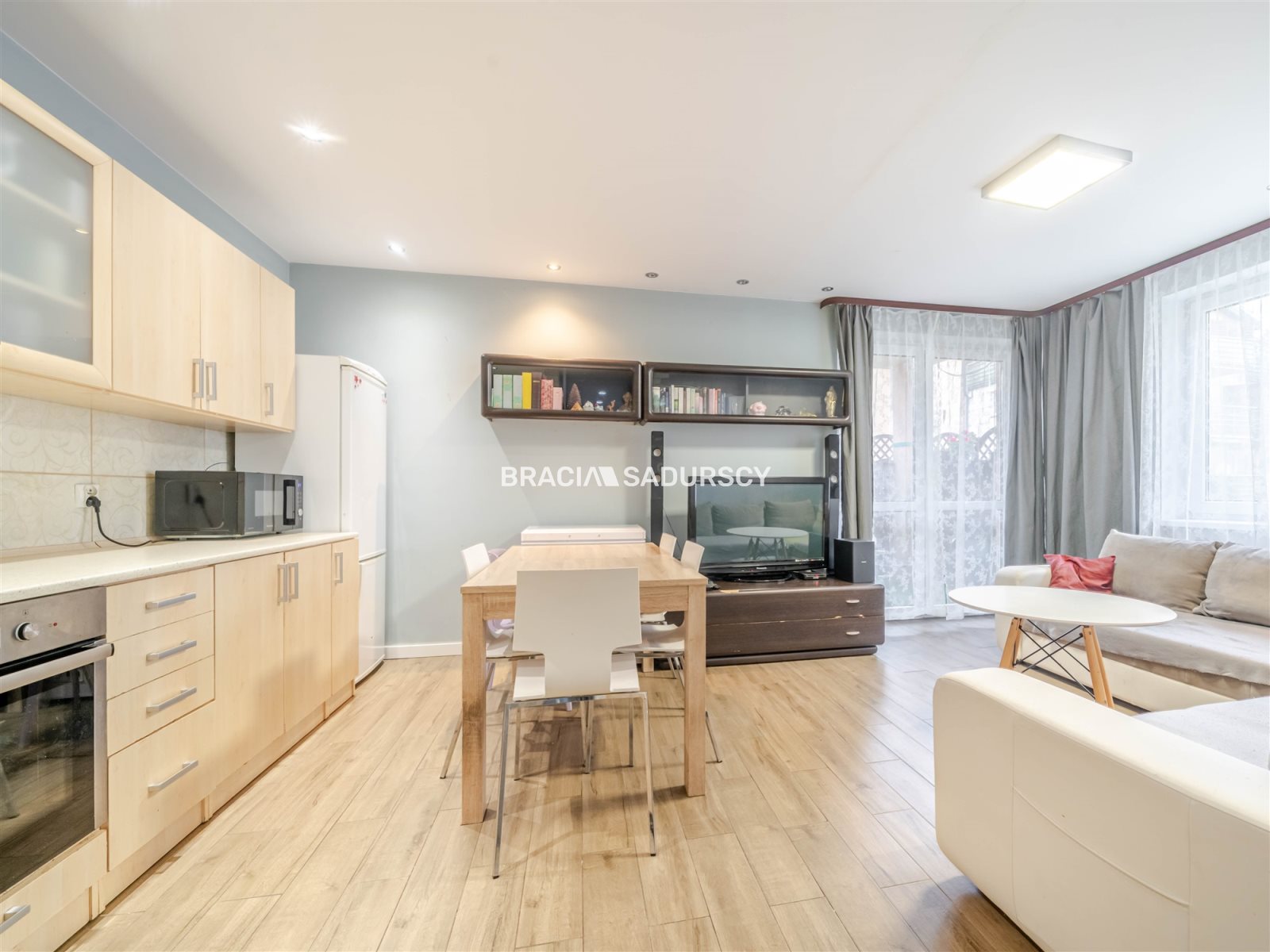 W cenie pozostają zabudowy stałe wraz ze sprzętem AGD, pozostałe meble do uzgodnienia.