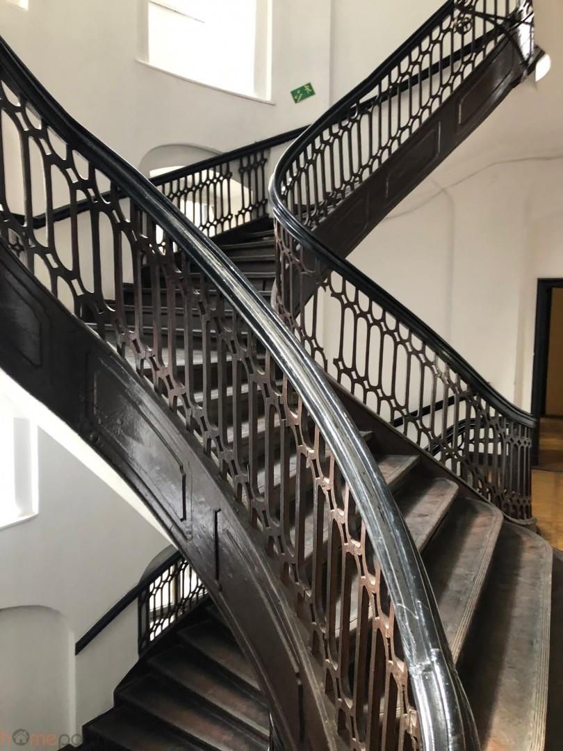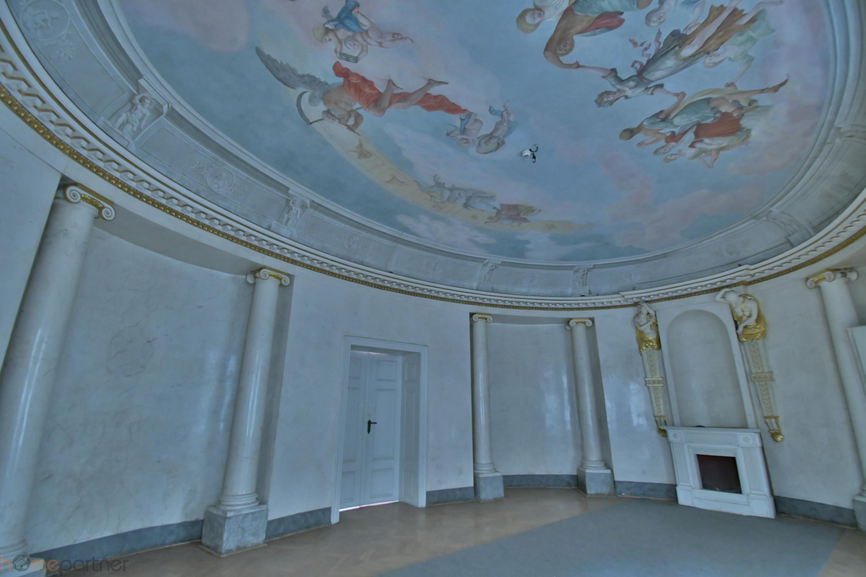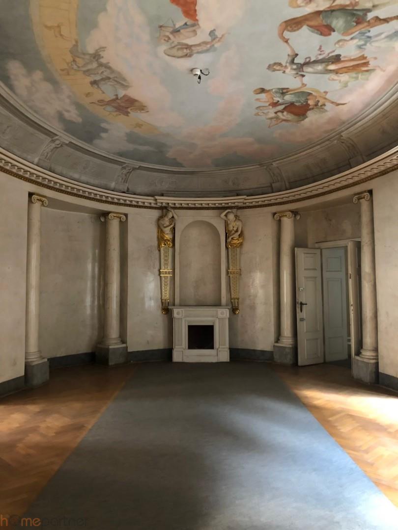 The interiors of the former palace show a complex layout of rooms that changes during the subsequent stages of expansion and changes in the functions of individual rooms. In the building, the original layout of suite rooms and representative interiors have been preserved: a columned hall, an oval staircase with a palace layout, with an extensive system of beautifully preserved stairs, and an oval study with a fireplace, plafond and rich decorations in the spirit of Berlin Classicism. Shafts and casings of technical elevators also survived. Wooden window joinery.