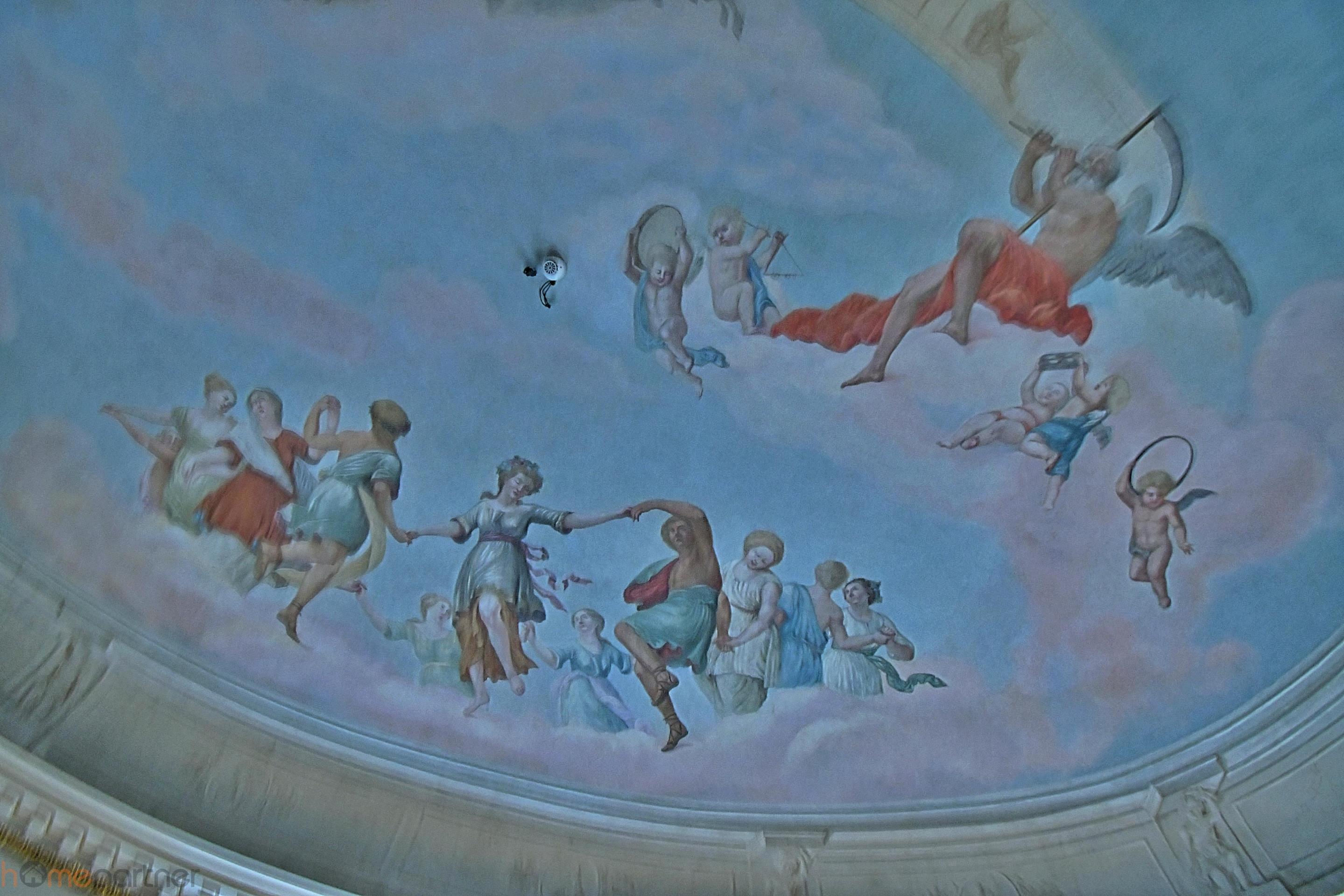 Entrance doors and gates are decorated with carved floral ornaments. In some rooms on the first floor there are ceilings with stucco decorations.