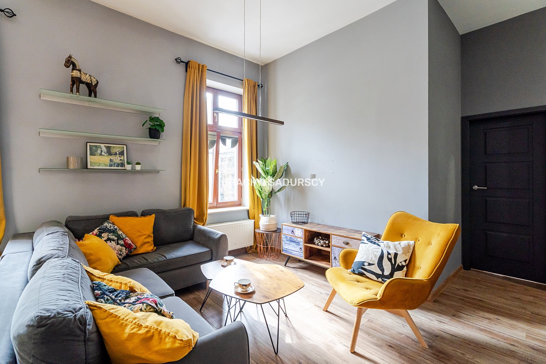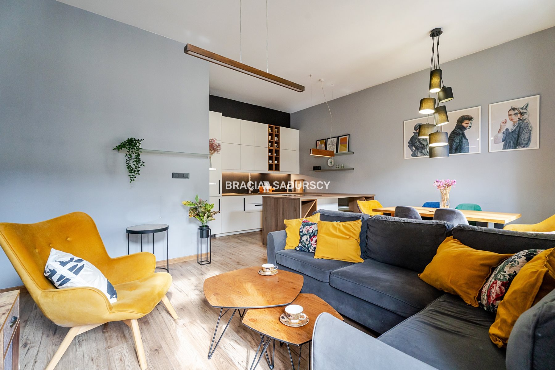 Mieszkanie w sercu starego Podgórza , 2 pokoje , w tym przestronny i funkcjonalny salon z jadalnią i dużym aneksem kuchennym .