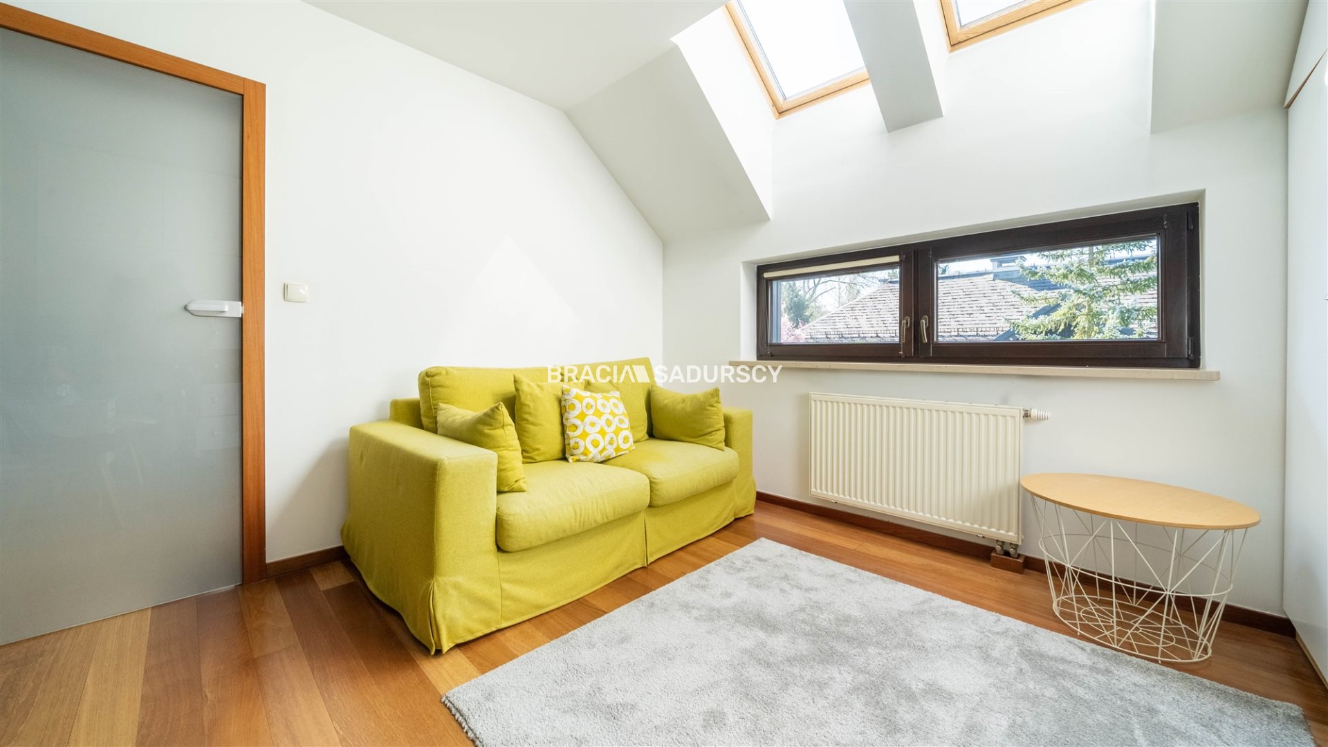 Mieszkanie sprzedawane jest w stanie dobrym, do lekkiego odświeżenia . Kuchnia zabudowana jest ładnymi drewnianymi meblami, ma dużą, wygodną wyspę, wyposażenie obejmuje lodówkę, zmywarkę, piekarnik, lodówkę na wino. Na podłogach w salonie i pokojach leży parkiet z drewna egzotycznego. Salon jest funkcjonalny i przestronny, przechodzi w przylegającą do kuchni jadalnię. W łazienkach zainstalowano ogrzewanie podłogowe oraz system odparowywania luster. Okna są drewniane. W mieszkaniu znajduje się nowy, dwuletni piec gazowy, bio-kominek, alarm, wideodomofon.