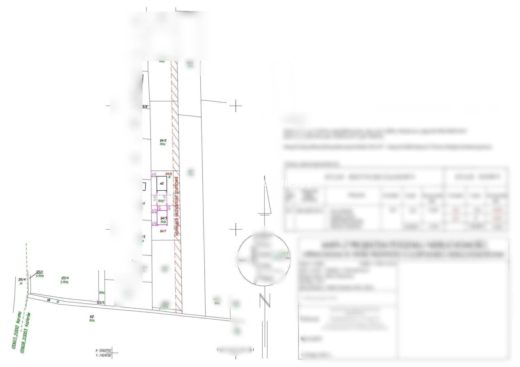 Działki około 650m2, płaskie. Dojazd drogą szutrową.