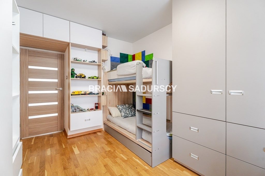 - pokoju zaaranżowanego obecnie jako pokój i sypialnia dzieci (około 11,5m2) - ekspozycja północna, wyjście na częściowo zabudowany balkon umożlwiający wygodne przechowywanie np. rowerów