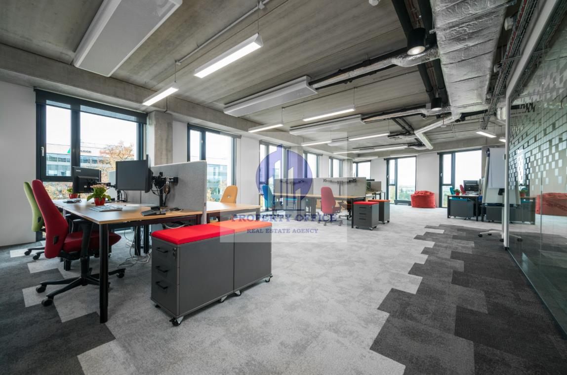 Standard powierzchni biurowej: Belki chłodzące, oświetlenie w części biurowej, uchylne okna, drzwi wejściowe, grzejniki, podniesiona podłoga, wyposażenie toalet, kontrola dostępu, 24h ochrona, BMS.