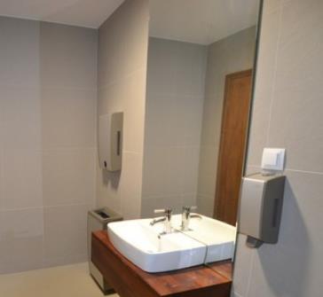 Każde skrzydło pietra posiada kompletnie wykończone toalety (damską i męską), kompletnie wykończoną kuchenkę z umeblowaniem i wyposażeniem (zlew, lodówka, zmywarka), pomieszczenie przeznaczone na serwerownię.