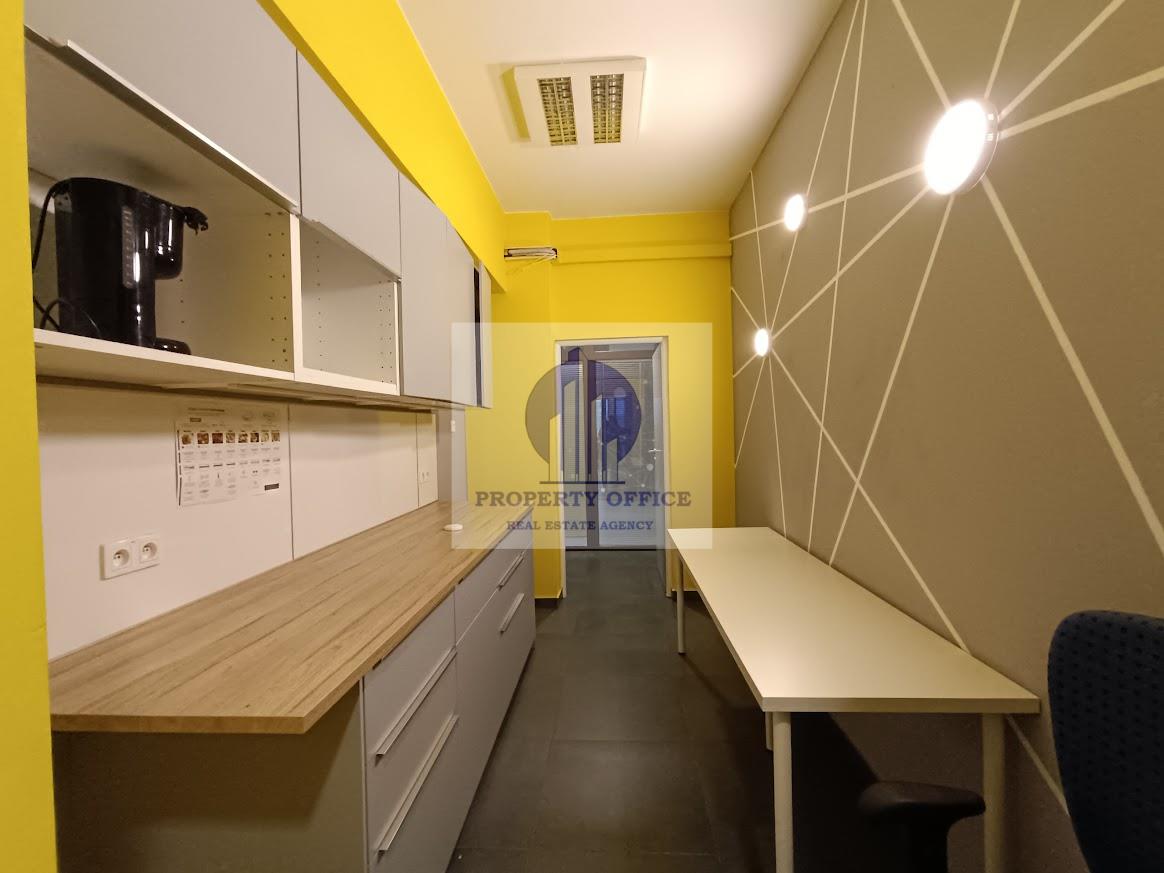 Biuro wyposażone w pełne zaplecze sanitarno-socjalne: aneks kuchenny i łazienka zostały wydzielone na powierzchni lokalu.