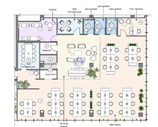 Powierzchnia biurowa do aranżacji zgodnie z potrzebami Najemcy.