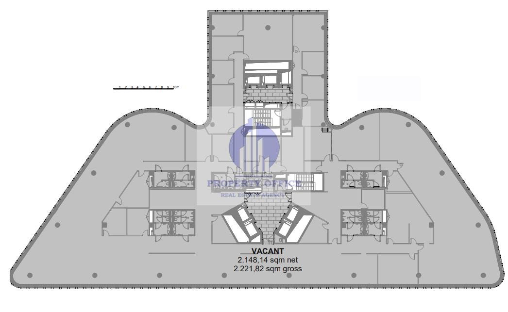 Powierzchnia typowego piętra wynosi około 2100 m2.