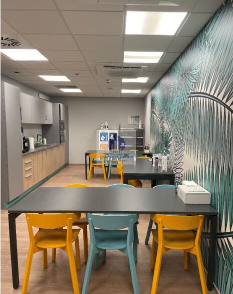 Lokal zajmuje połowę piętra budynku i ma bardzo dobry dostęp do naturalnego światła.