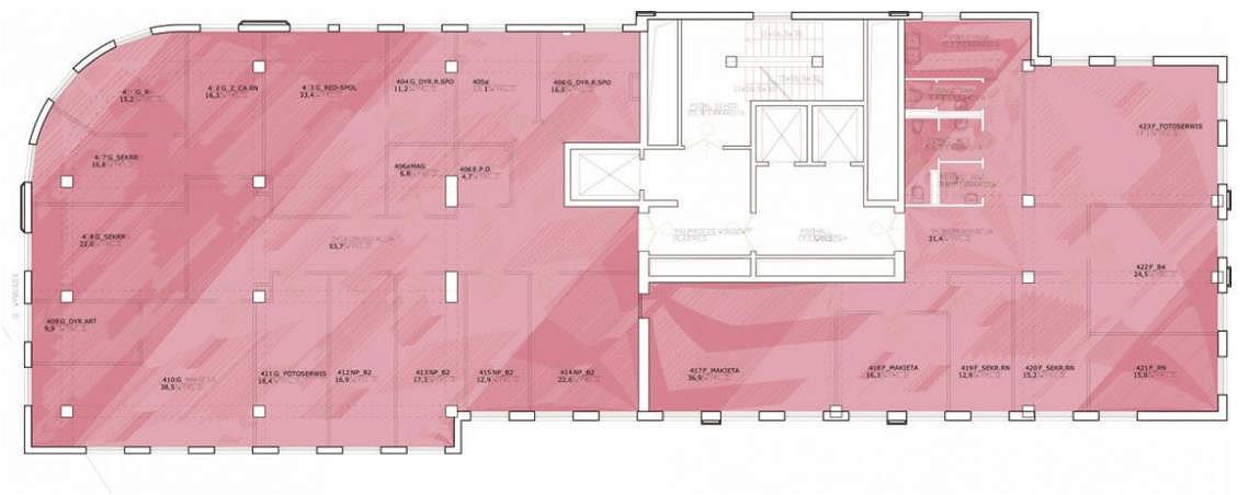 Konstrukcja budynku umożliwia dowolną aranżację powierzchni, zarówno w formule open-space jak i w układzie gabinetowym.
