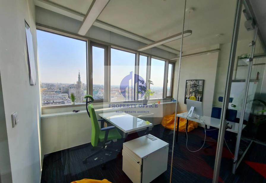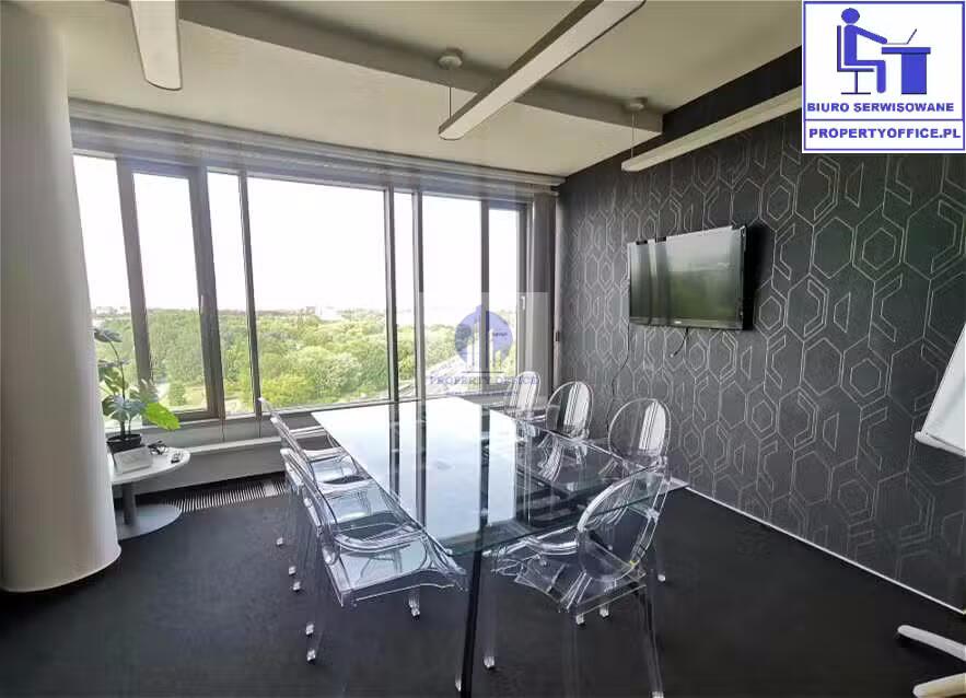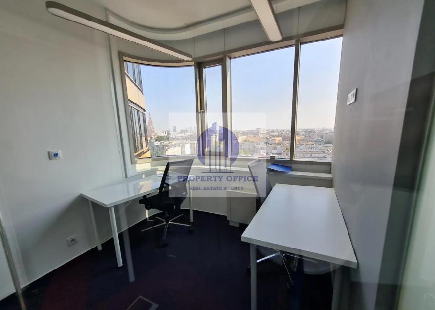 Do wynajęcia: biuro serwisowane dla 4 osób na 8 piętrze eleganckiego biurowca na warszawskim Śródmieściu, niedaleko stacji metra Politechnika.
