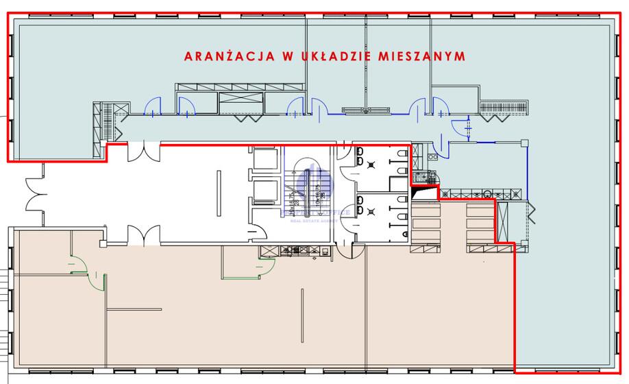 Aktualny układ obejmuje dwa przestronne open spacey, dwie duże sale spotkań, call boxy, praktyczny magazynek oraz nowoczesną kuchnię z dużą jadalnią doskonałe miejsce na przerwy i integrację zespołu. * Istnieje możliwość dostosowania układu powierzchni do indywidualnych potrzeb najemcy.
