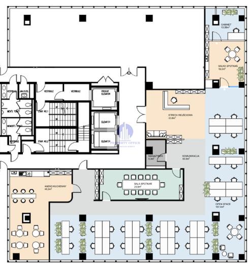 Do wynajęcia: lokal biurowy o pow. 493,15 m2 na 9 piętrze eleganckiego budynku biurowego na warszawskim Śródmieściu, w okolicach ul. Poznańskiej
